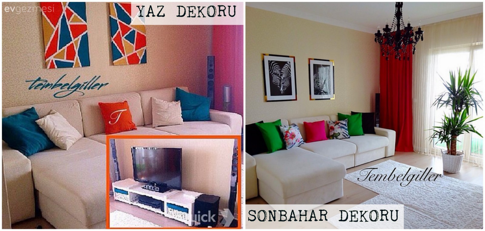 Ev sahibimiz Tembelgiller, balkonunda renk ve aksesuar değişimleriyle, renk ve aksesuar fikri arayanlara adeta bir görsel ansiklopedi oluşturmuştu. Havalar soğuyor, balkondan evin içine doğru geçiş yapıyoruz. Bu sefer oturma odası dekoru ile oynama zamanı!