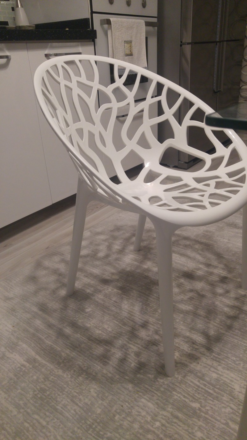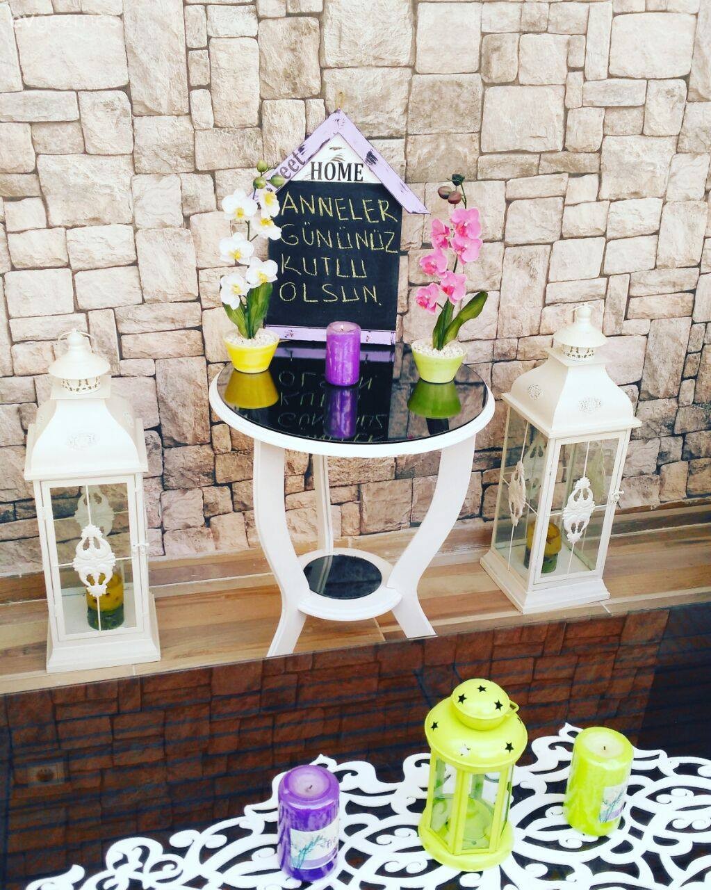 Çok sevdiği mor ve beyaz uyumunu dekorunun odağına taşıyan Dilek hanım, evinin dekorunda sade hatlı mobilya seçimlerini ayna kaplı dekoratif objeler, taşlı aksesuarlar, şamdan, fener, mumluklar ve daha pek çok uyumlu detayla zenginleştirmiş.