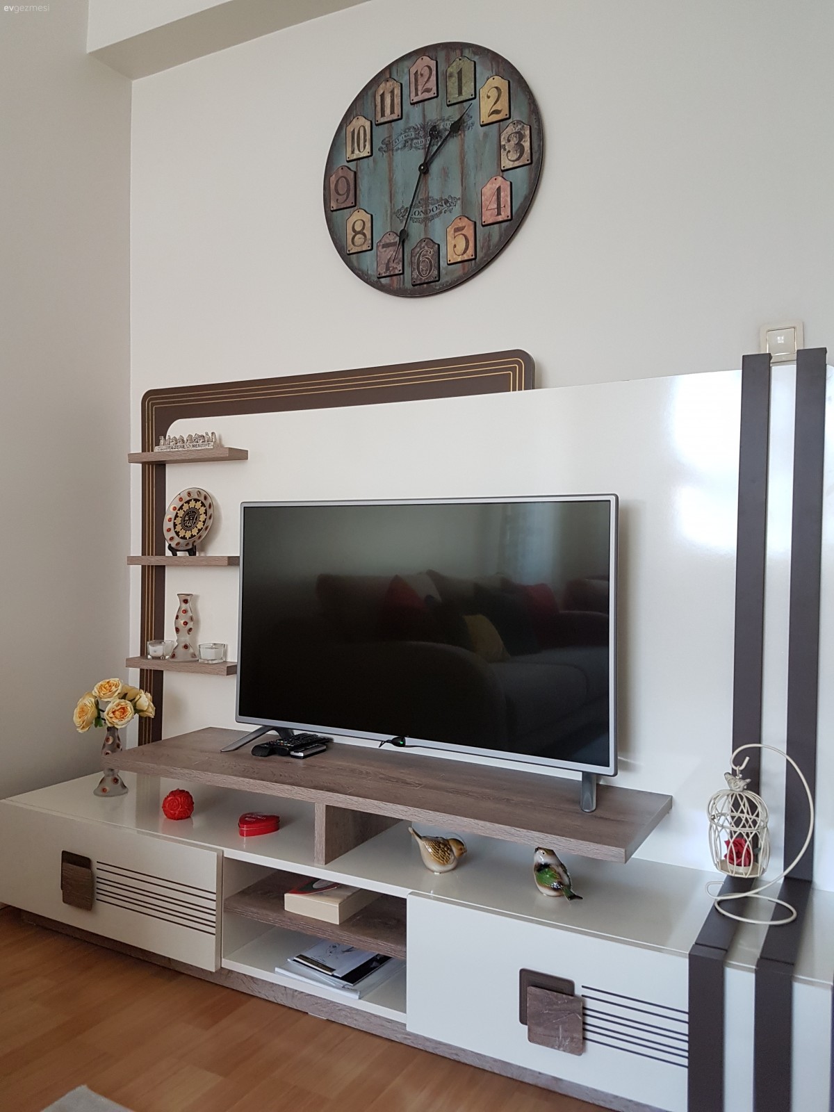 Saatiniz çook güzel fakat tv ünitesinin üzerinde olmamış bence daha boş bir duvara takarsanız iyi olur