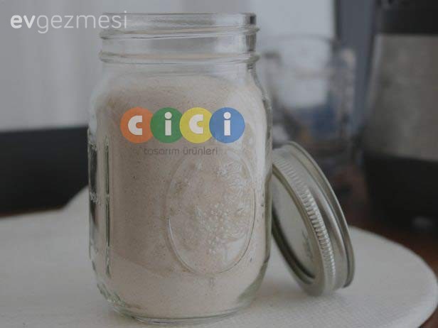 Biz bir kavonozun içine huni yardımıyla döktük. Herhangi bir saklama kabına alabilirsiniz.<br />