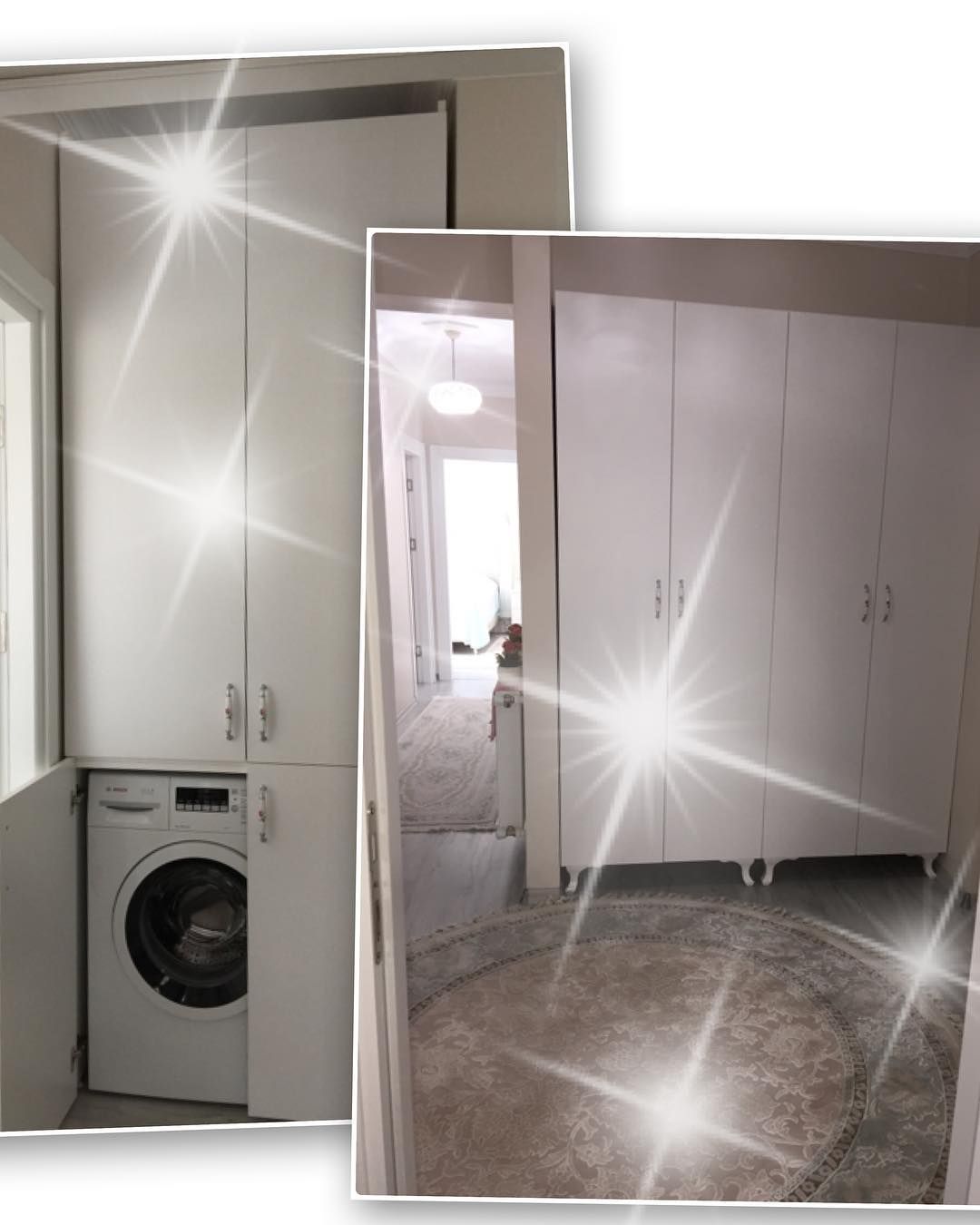 Mutfak dekoru ise beyaz dolaplar, renkli aksesuarlar ile cıvıl cıvıl. Karşılıklı dolapların kullanımından da çok memnun kalmış Nevin hanım.