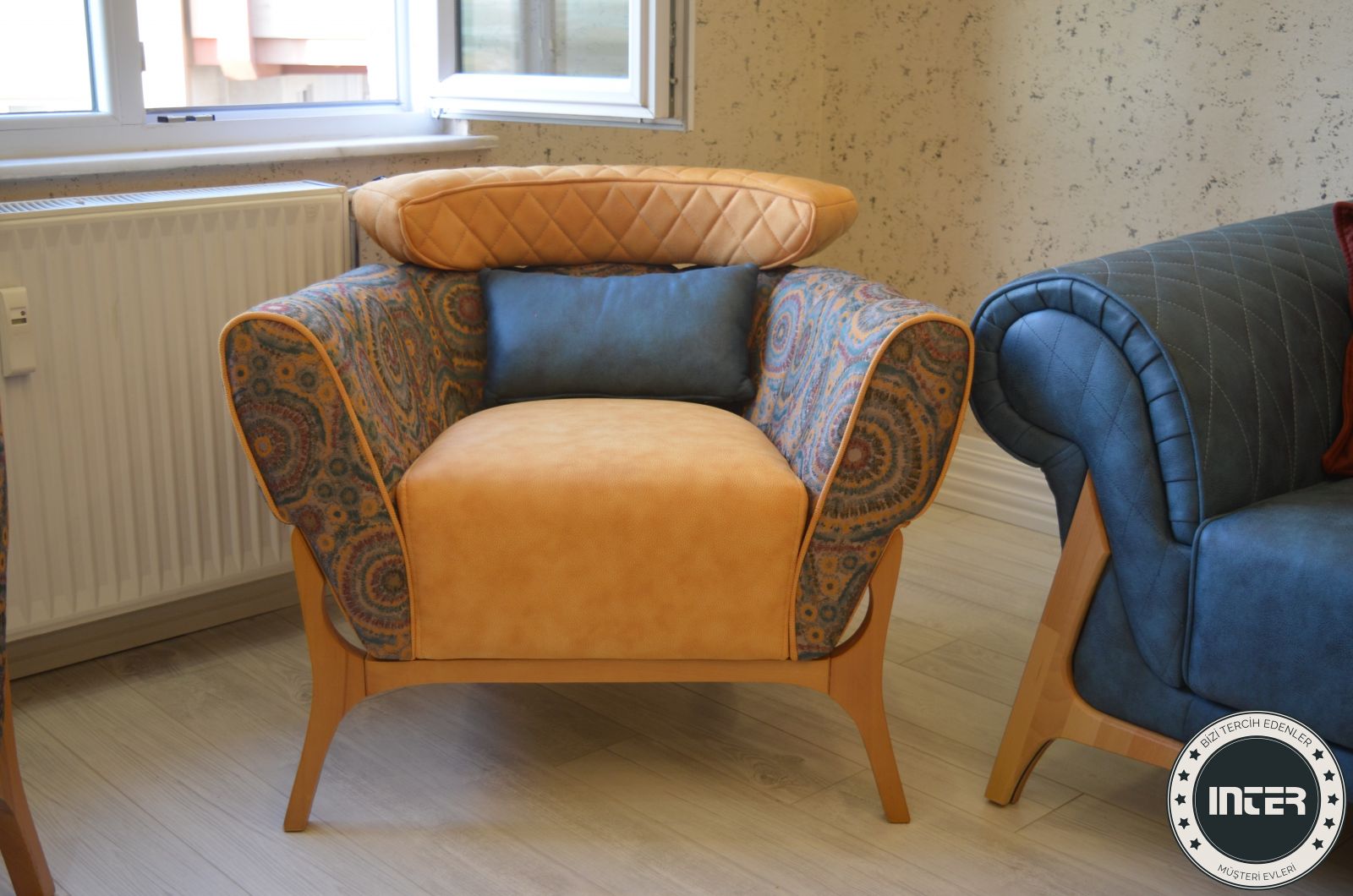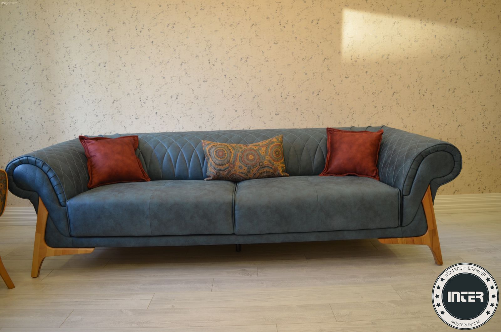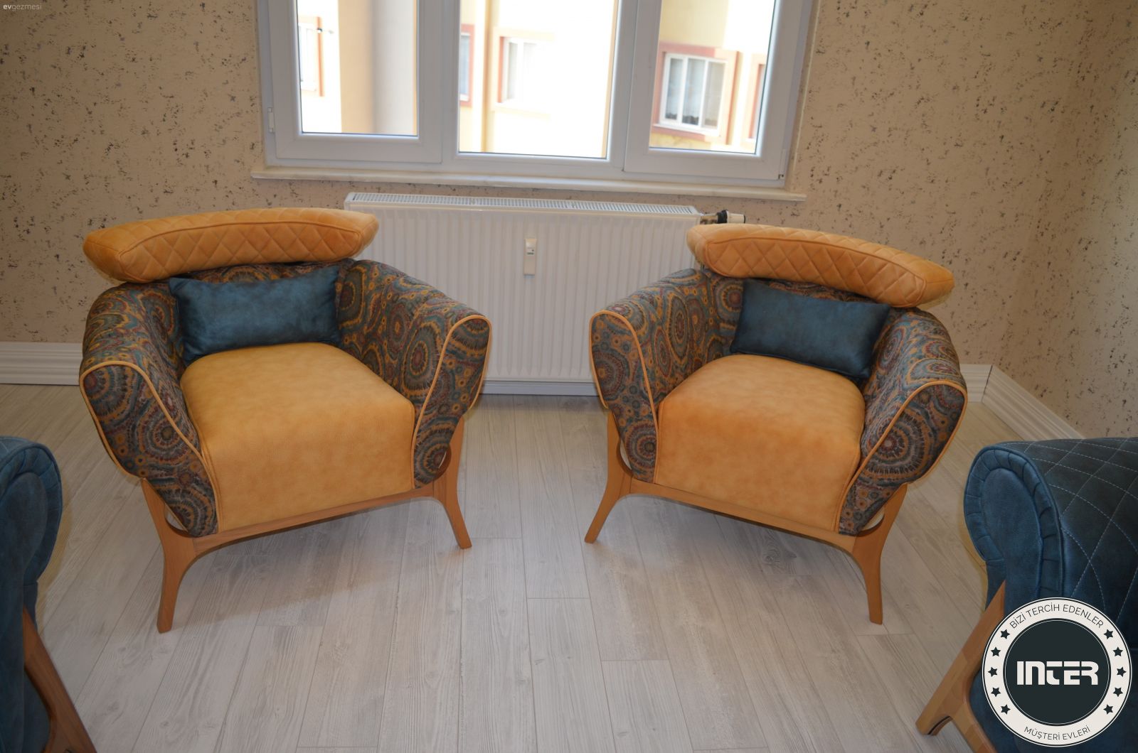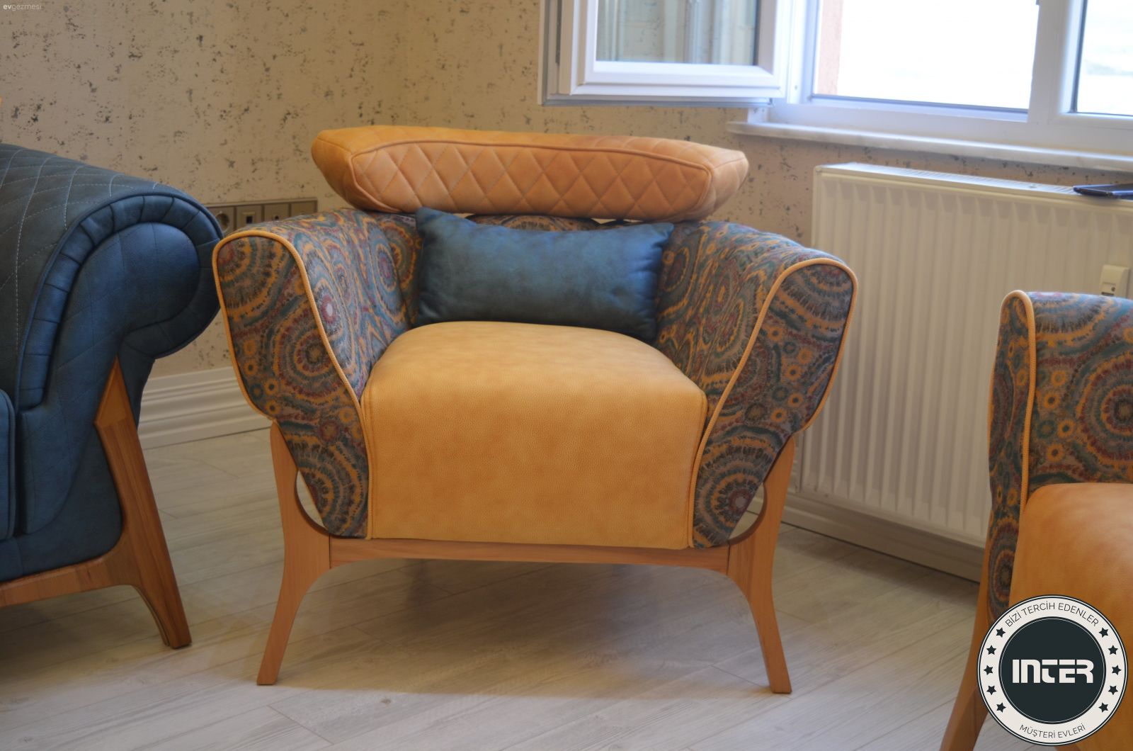 Nubuk kumaşıyla ortama renk katan koltuk takımı Inter Mobilya'dan..