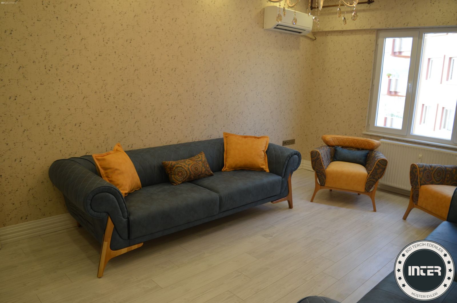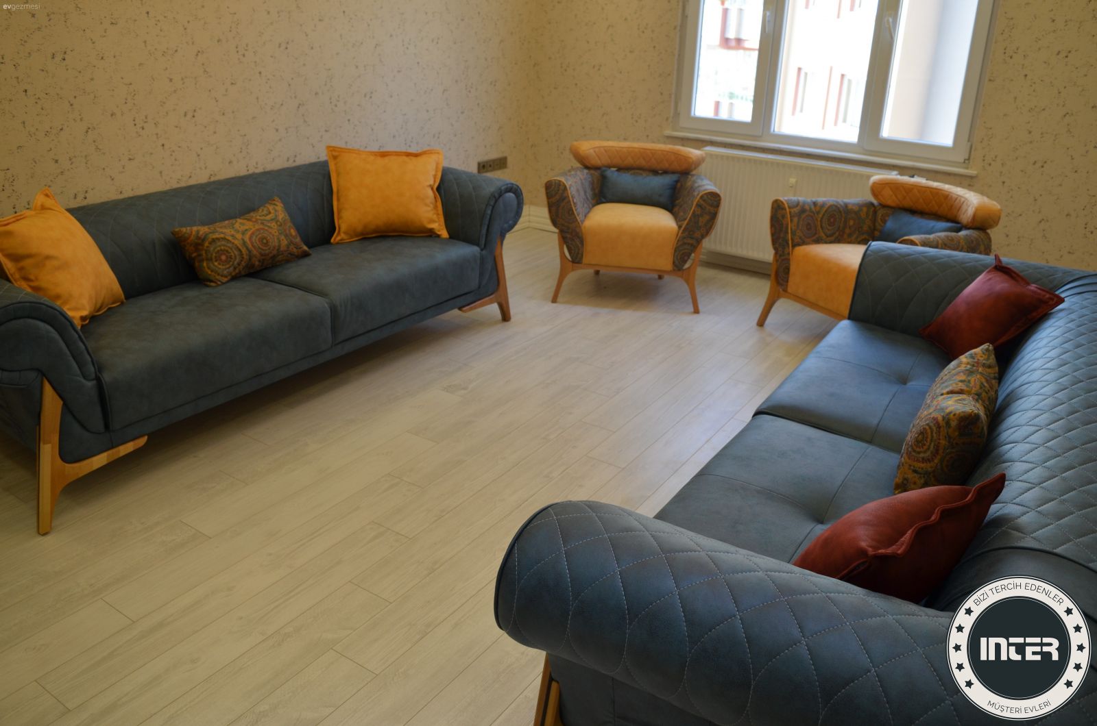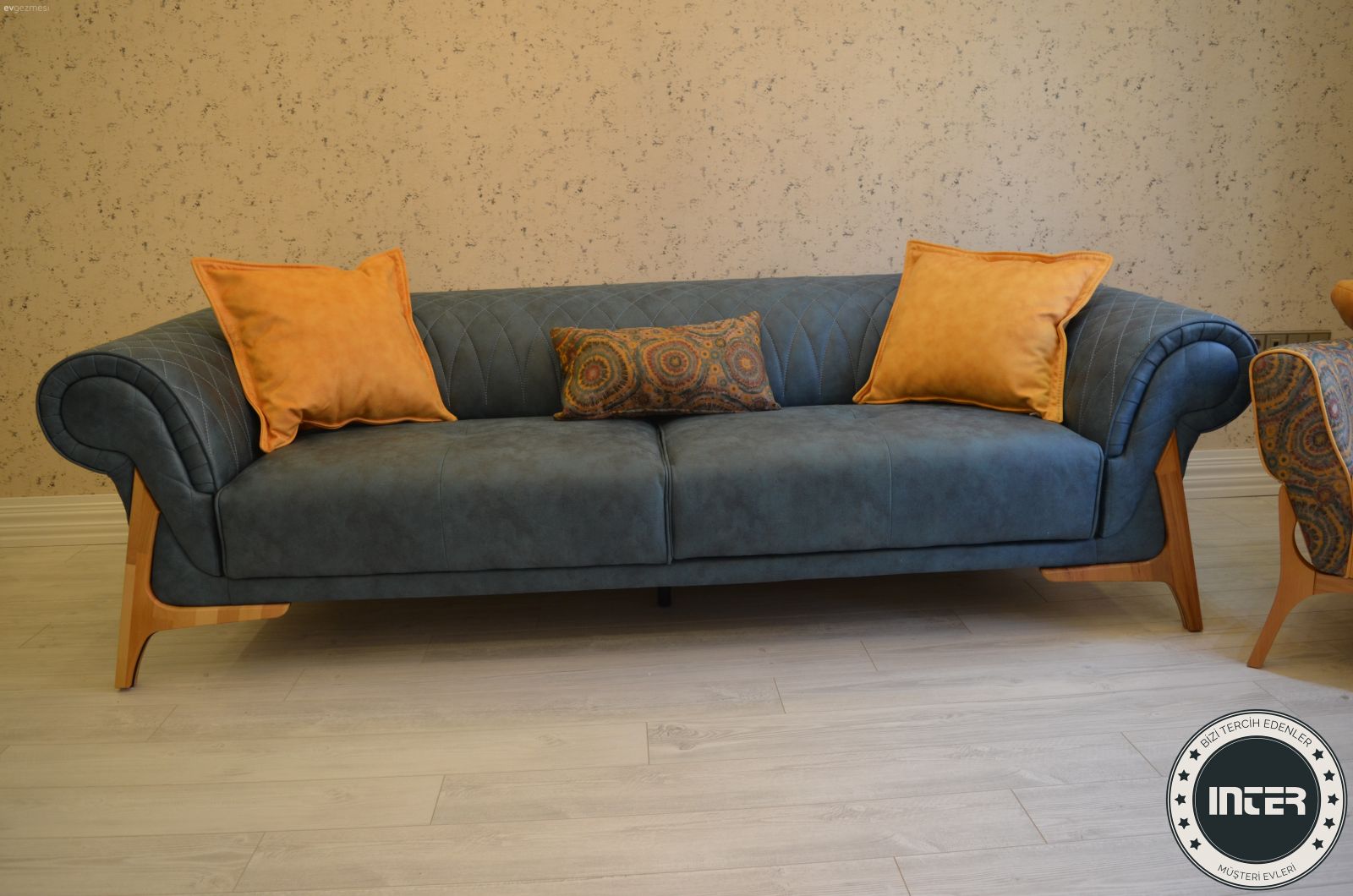 Nubuk kumaşıyla ortama renk katan koltuk takımı Inter Mobilya'dan..