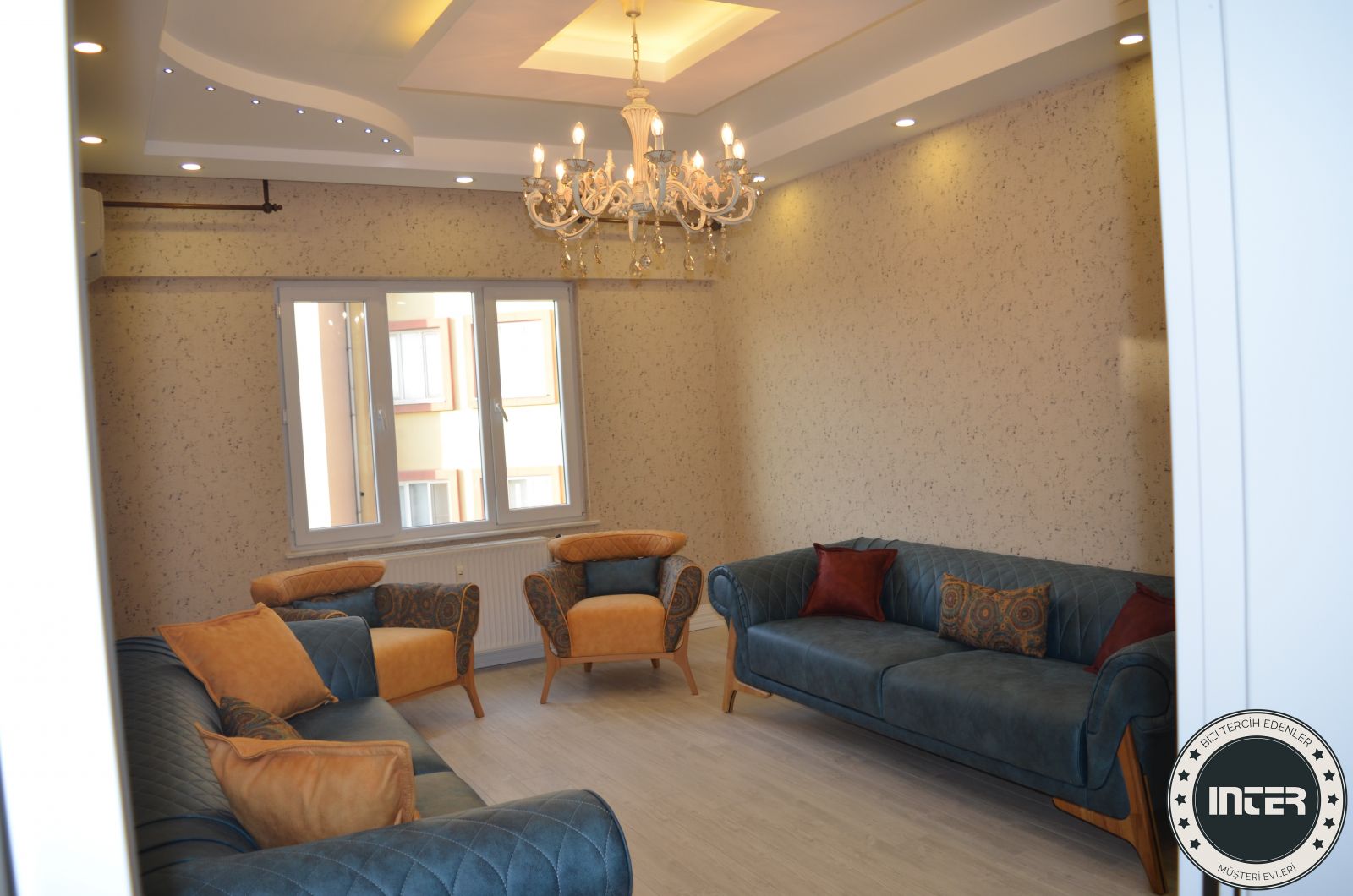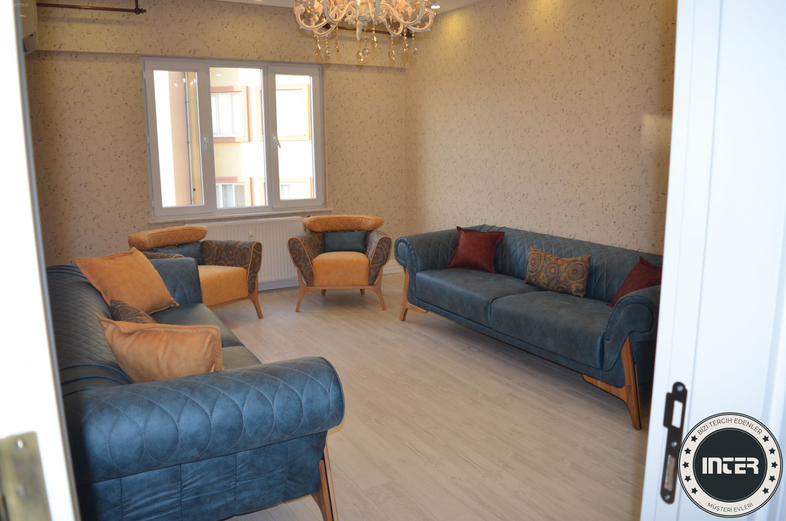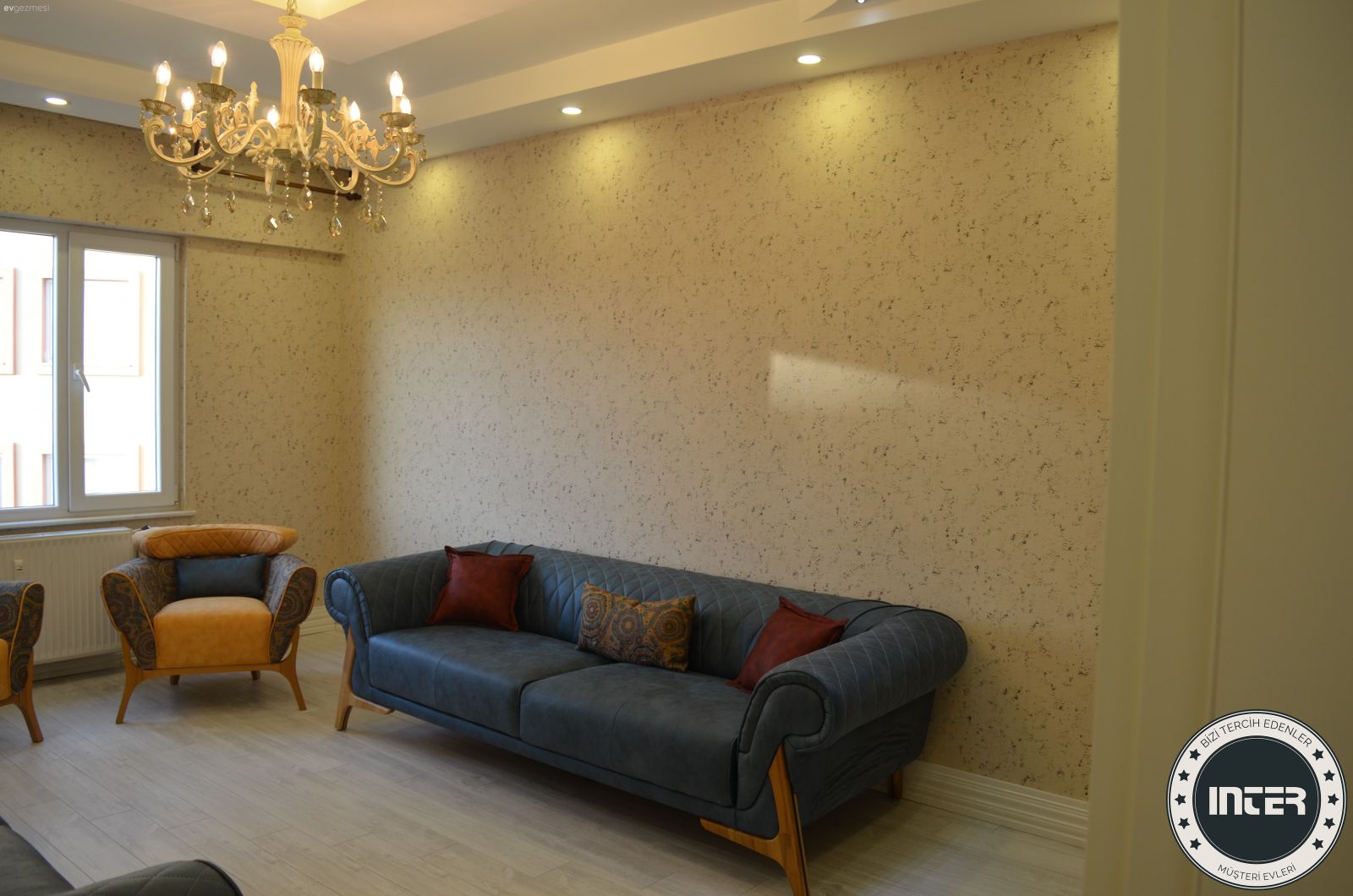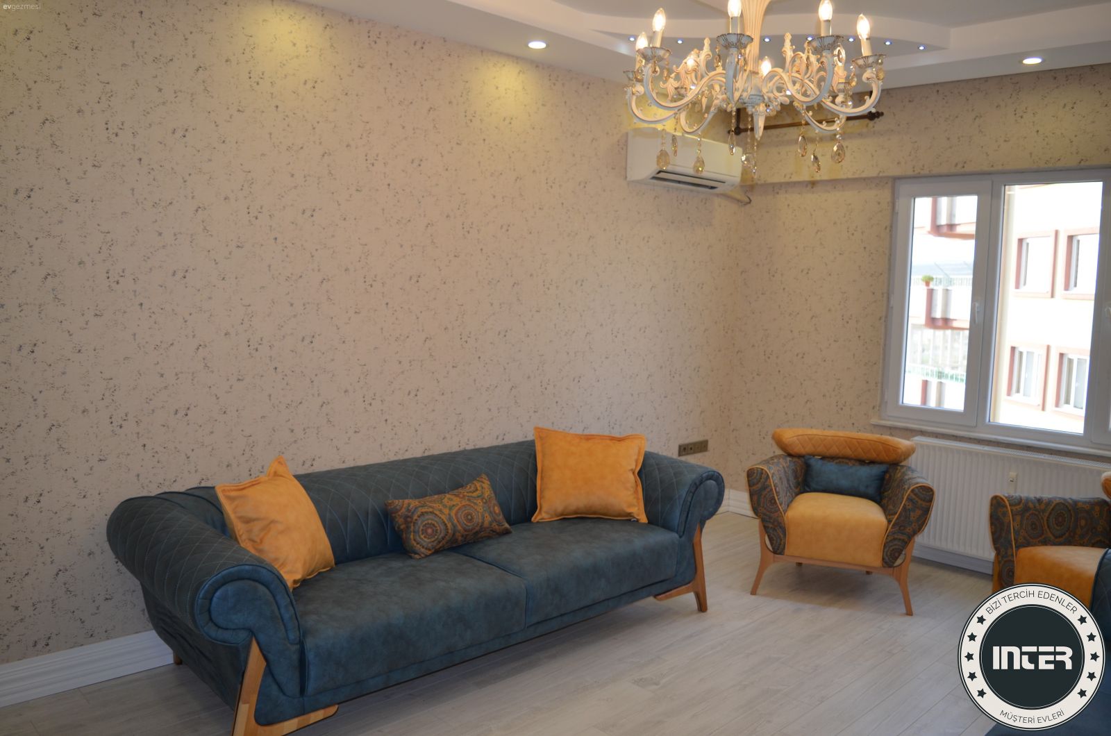 Nubuk kumaşıyla ortama renk katan koltuk takımı Inter Mobilya'dan..