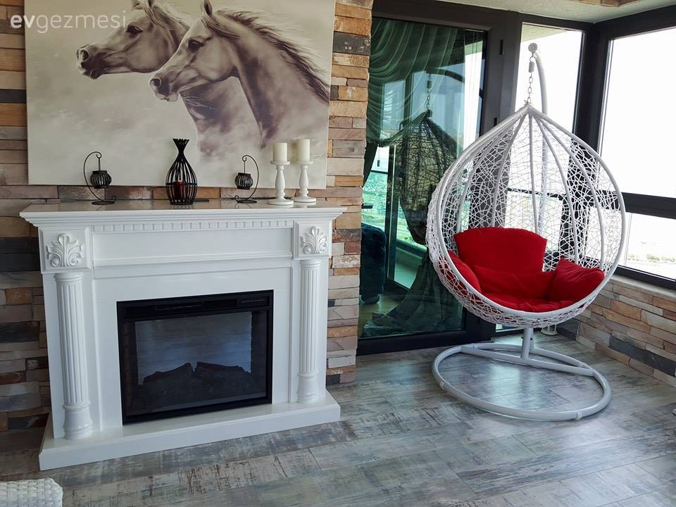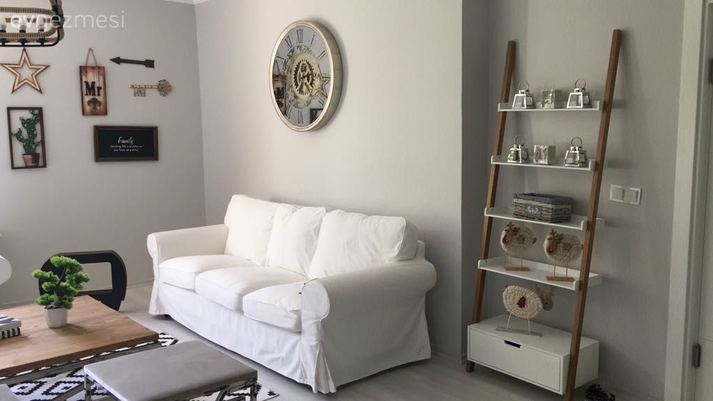 Rustik stilde parçalarıyla salonunda hem doğal, hem de zarif bir atmosfer yakalamış Esracan hanım. Çiftlik evi konseptini hem mobilya seçimlerinde, hem de aksesuarlarında başarı ile tamamlayan ev sahibimiz, sadece fotoğraflarına bakarken sıcaklığını hissedebildiğimiz bir alan dekore etmiş.