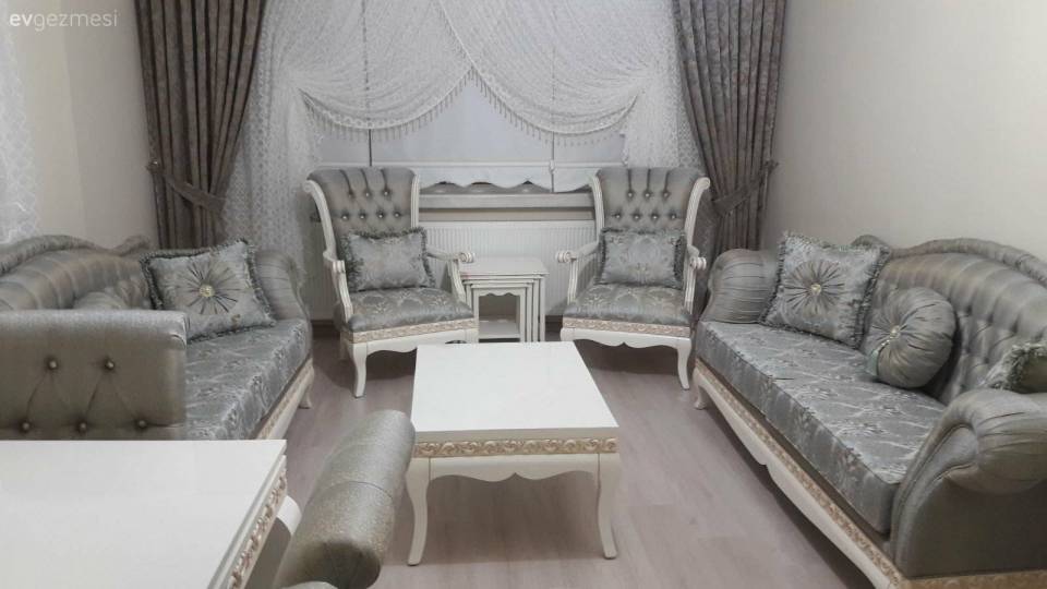 Zamansız bir ev tasarlayan Ayfer hanım, geleneksel etkileri modern detaylarla harmanlıyor. Ne çarpıcı renkler ile fazlaca öne çıkan, ne de nötr tonlarla monoton, oldukça dengeli bir renk paleti ile mobilyalarının şıklığını öne çıkarıyor. Aksesuarlarında tercih ettiği ayna, dekoratif objeler, şık perdeler ve gösterişli aydınlatmaları taşımada çok başarılı sofistike bir salon dekore ediyor.