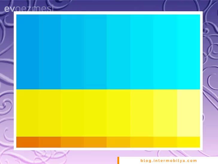 Örneğin, baskın tonları duvar boyası, mobilya döşemeniz olabilir. İkinci ve üçüncü renk tonları ise yastıklar, vazolar gibi aksesuarlar için kullanılabilir.