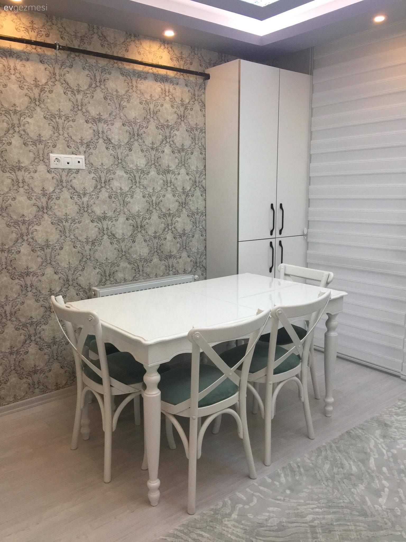 Eskişehir'de yaşayan ev sahiplerimiz, 4 ay önce taşındıkları evlerinin geniş mutfağında bolca depolama ve hazırlık alanı yanında küçük kızlarıyla beraber aile yemeklerini yiyebilecekleri bir masa tercih etmişler. Evin en çok zaman geçirilen bölümlerinden biri olan mutfağın dekoru da tabi kullanışlılığı gibi önemli. Fatma hanım göze hitap eden detaylarla dekoru tamamlamayı seviyor. Duvar kağıdı, şık perde ve halı dekoru zenginleştiren parçalar..