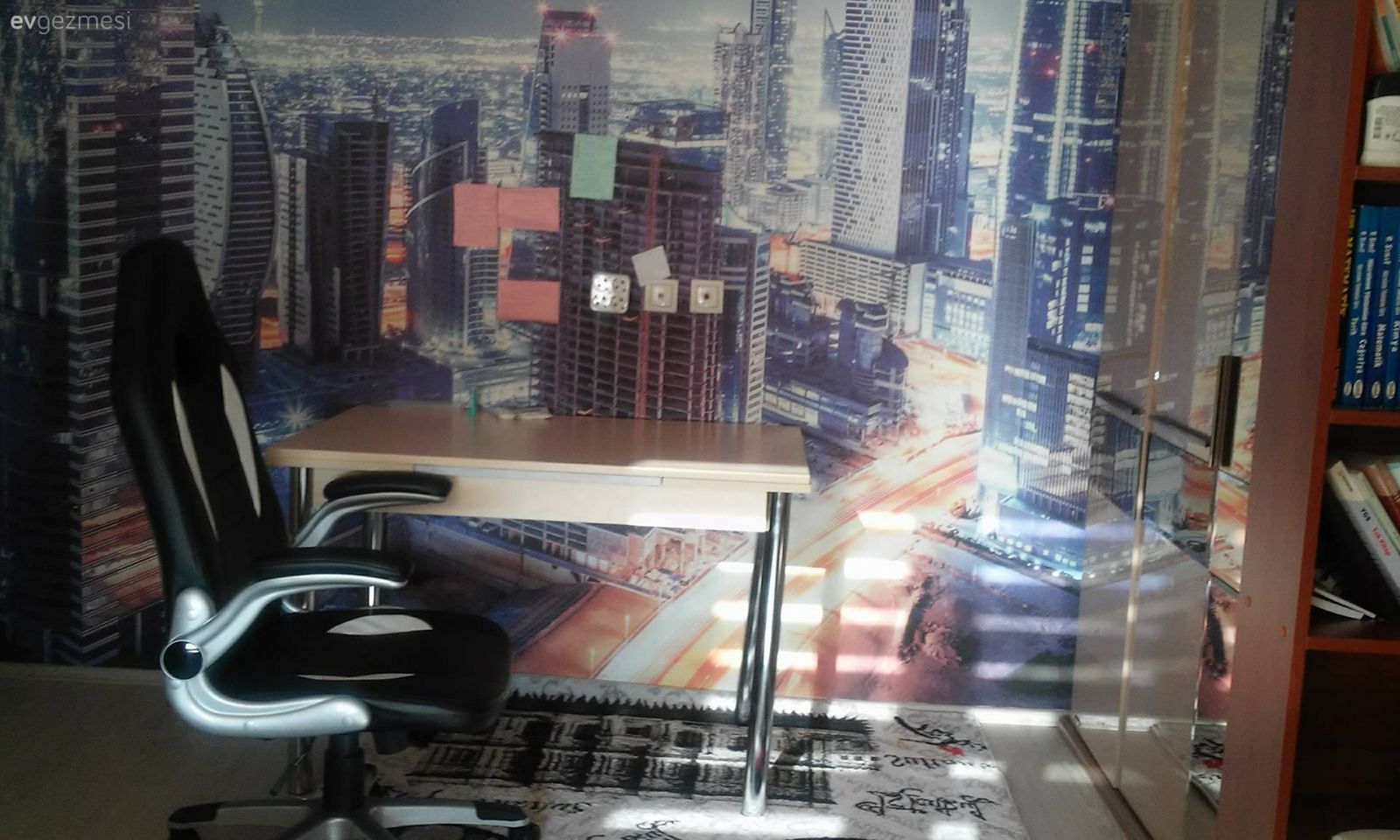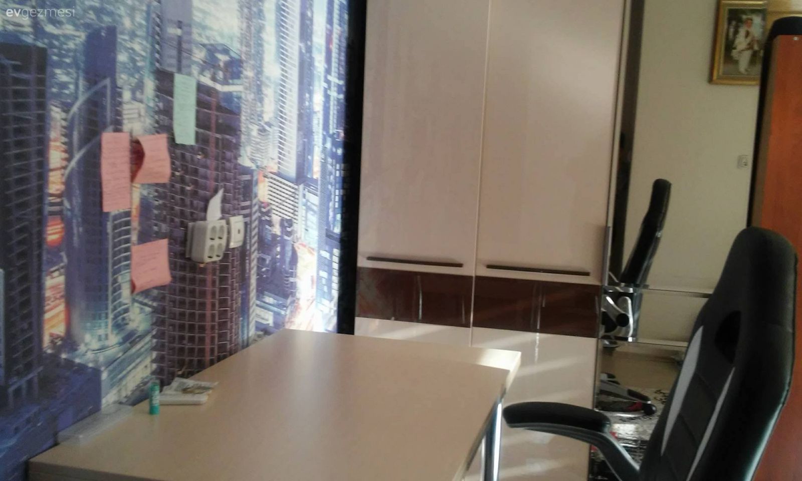 Dekoratif uygulamalar sadece salonla sınırlı değil. Yatak odasının ahşap mobilyalarına uygun bir kiriş yaptırılmış. Mutfakta gizli aydınlatmalı, şık bir asma tavan tercih edilmiş. Çocukların odalarında ise büyük boyutlu duvar kağıtları dikkat çekiyor. Buyrun Semiha hanıma konuk olalım..