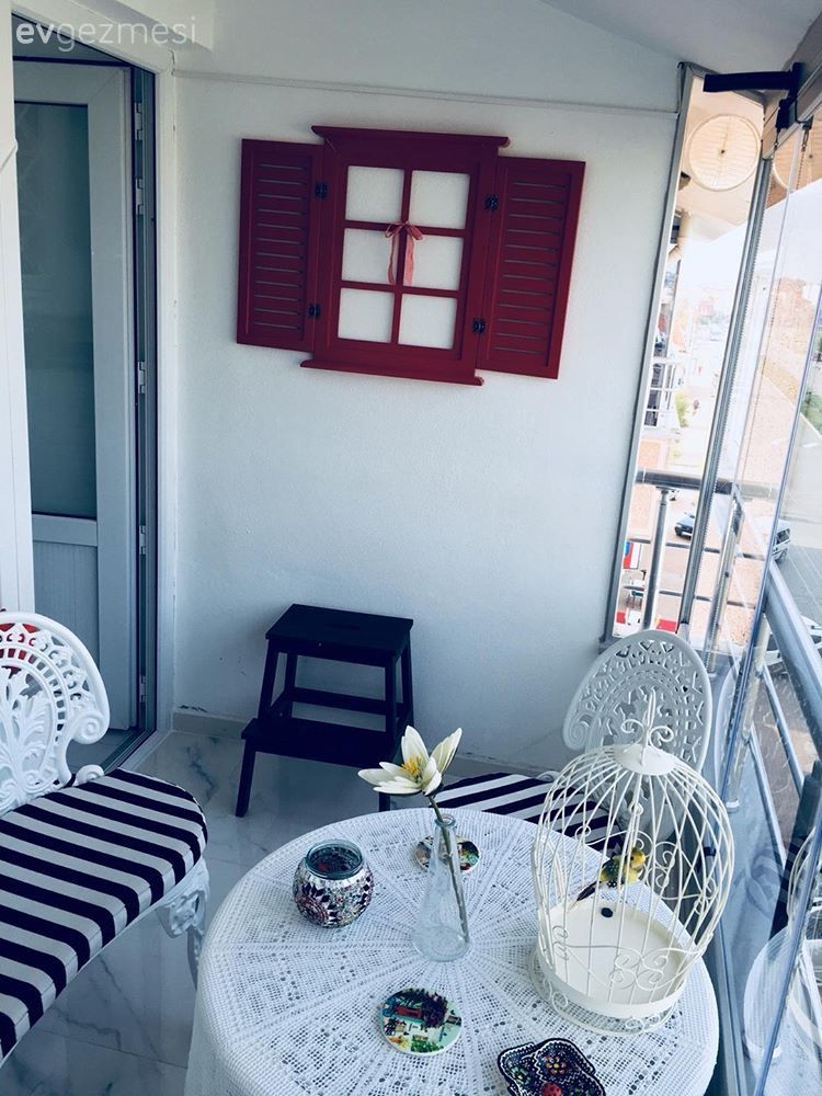 Siyah, beyaz hem mutfak, hem balkon dekorunda ön planda. Bu ikilinin keskin farkına en güzel uyumu sağlayan kırmızı ise aksesuarlarda yer buluyor.