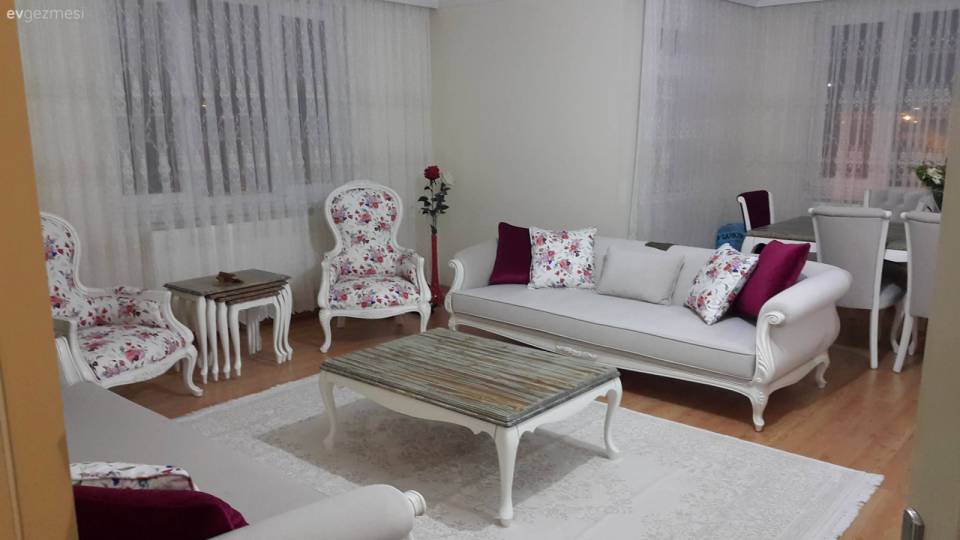 Mobilyalara gelince.. Köşe koltuk Gebze Bayramlar Mobilya, yemek masa, sandalyeleri Bal Home, saat Linens, halılar vemetal orta sehpa ise Ikea.