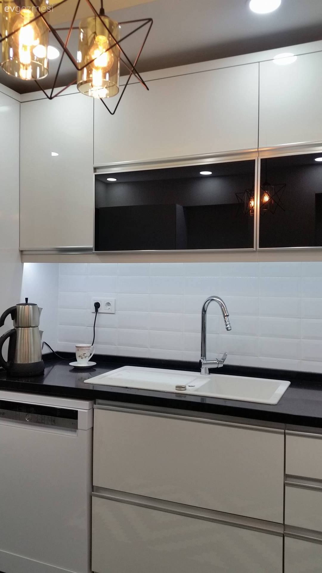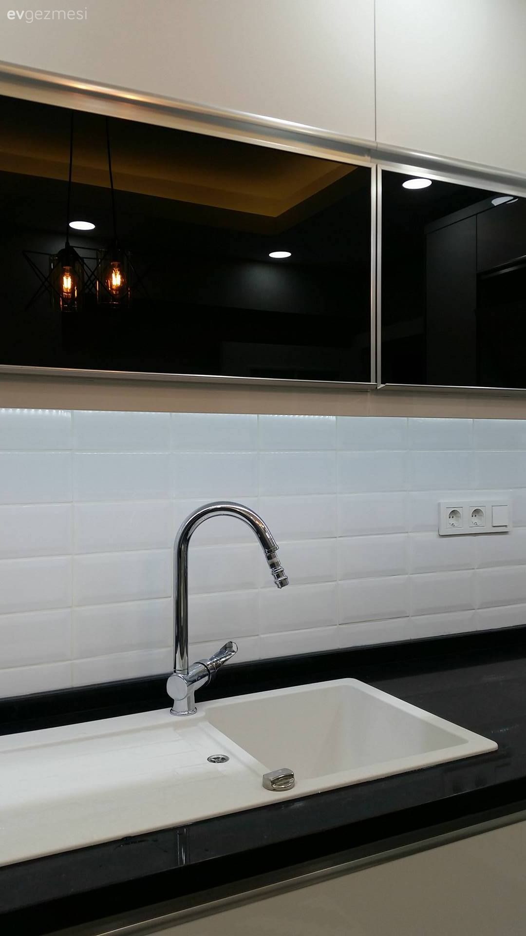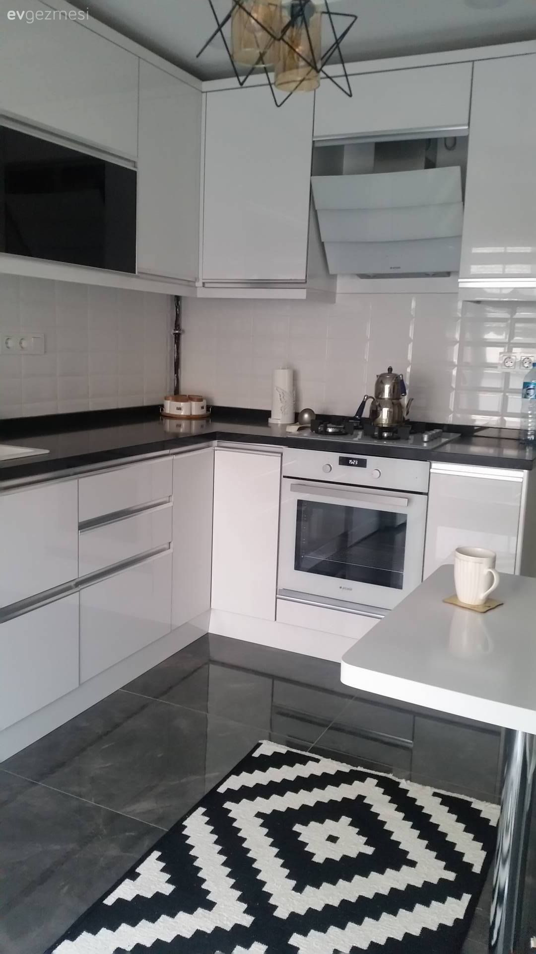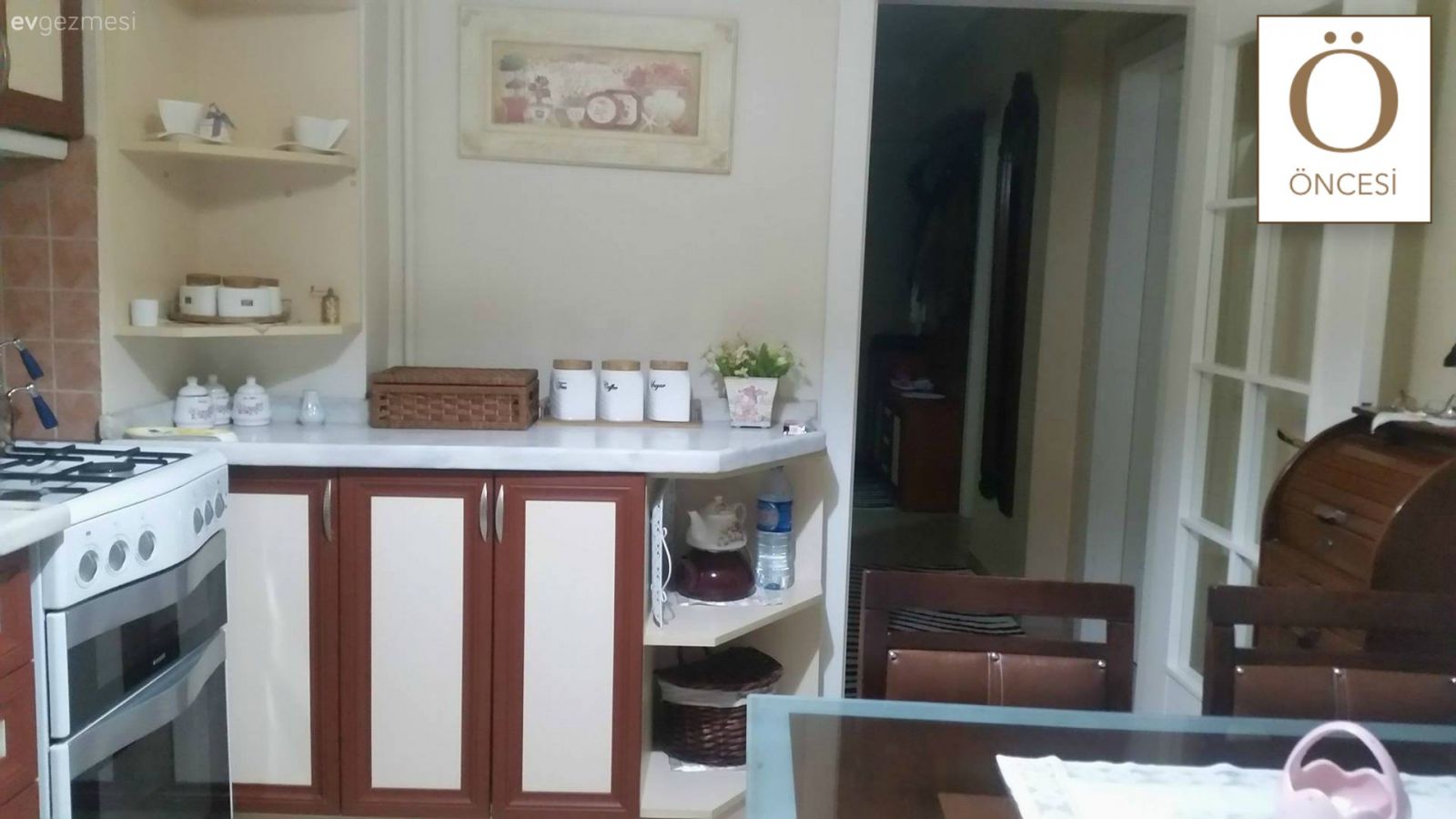 Antresi ve mutfağında kapsamlı bir tadilat ile yenileme yapan ev sahibimiz Nuray hanım, eski halini bilenlerin tanımakta zorlanacağı, adeta başka bir ev sahibi olmuş. Siyah ve beyaz kontrastına hem antre ve holde, hem de mutfakta yer verilmiş. Dolap ve duvarlarda kullanılan beyazı, koyu renkli zemin seçimi ön plana çıkarıyor.