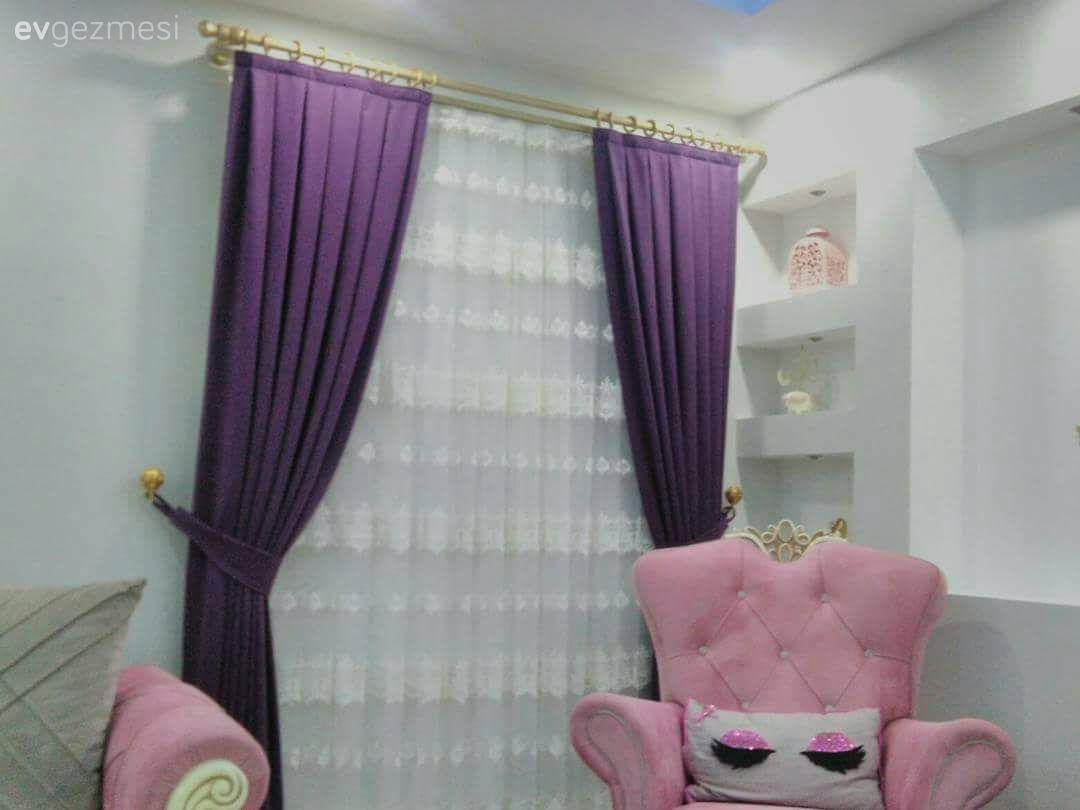 Keşke perdelere mor don diktireceğinize tek taraflı kruvaze kanat yaptirsaydınız sandalyeleriniz renginde bunun dısinda çok güzel?