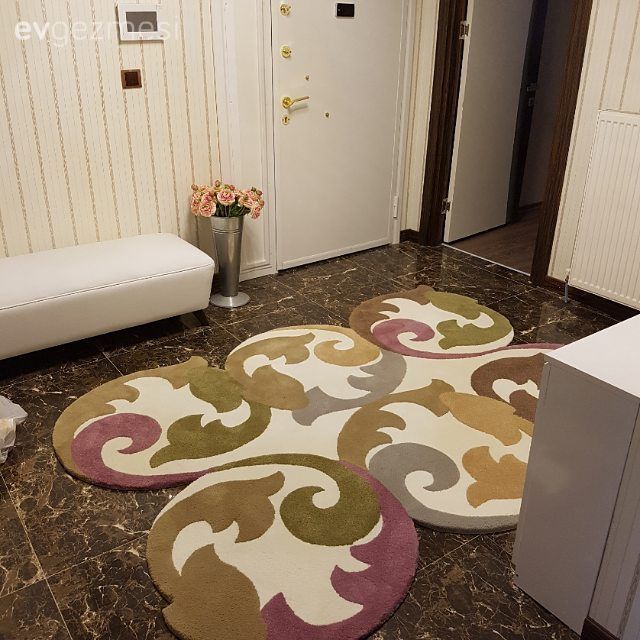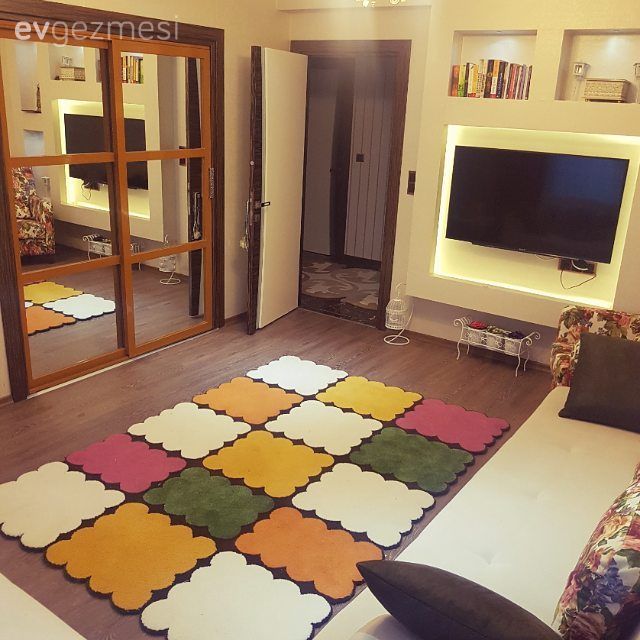 Özel tasarım halılar ile farklı ve özgün bir eve, Banu hanımın keyifli evine konuğuz. Modern, konforlu bir stile yer verdiği evinde, mobilya seçimlerindeki sadeliği dikkat çekici duvar ve zemin ile tamamlamış ev sahibimiz. Oturma odasında niş içi aydınlatmalar ve ayna, antrede duvar kağıdı alanı hareketlendiriyor. Gösterişi zemine halılar dikkat çekiyor.