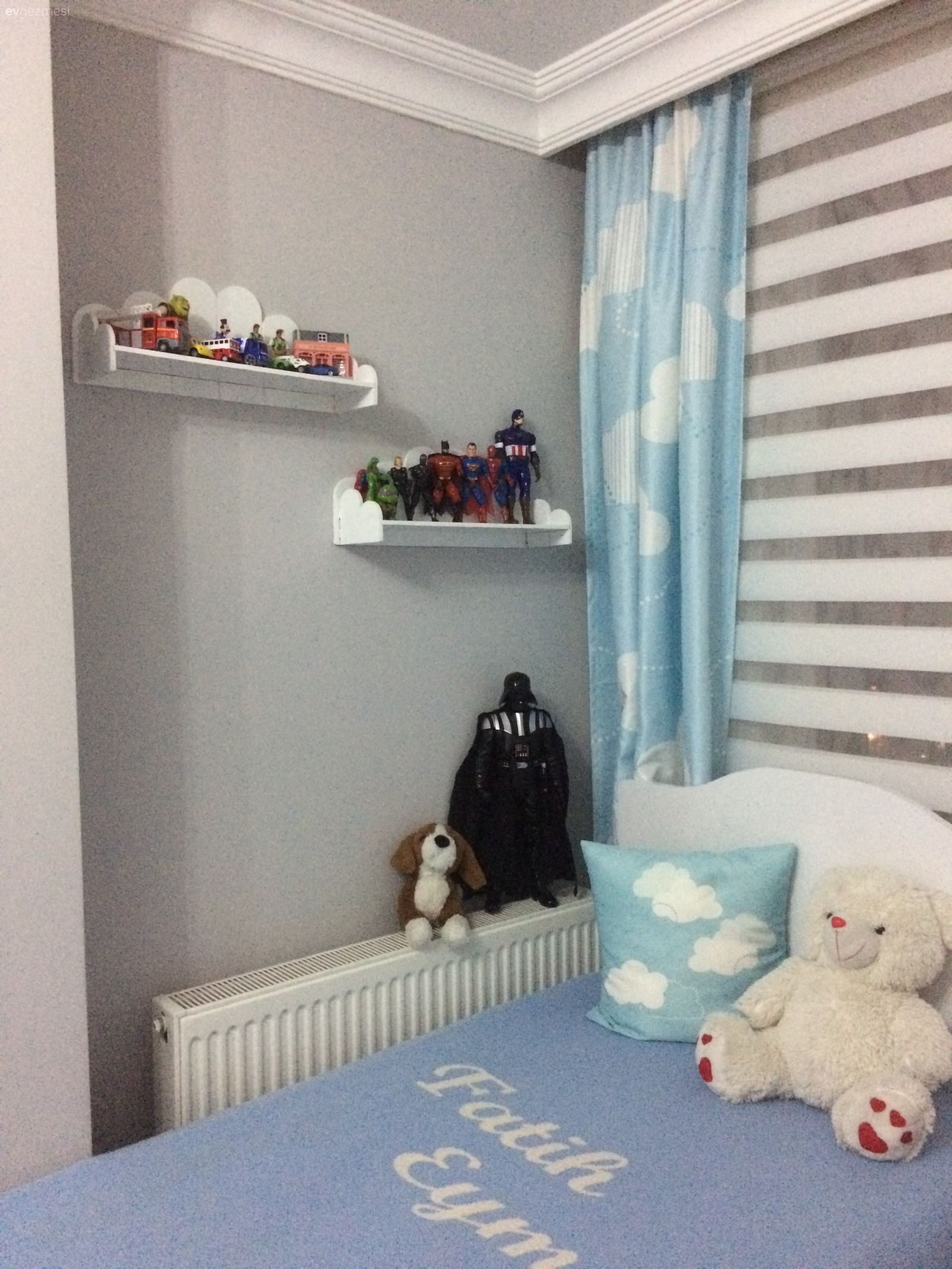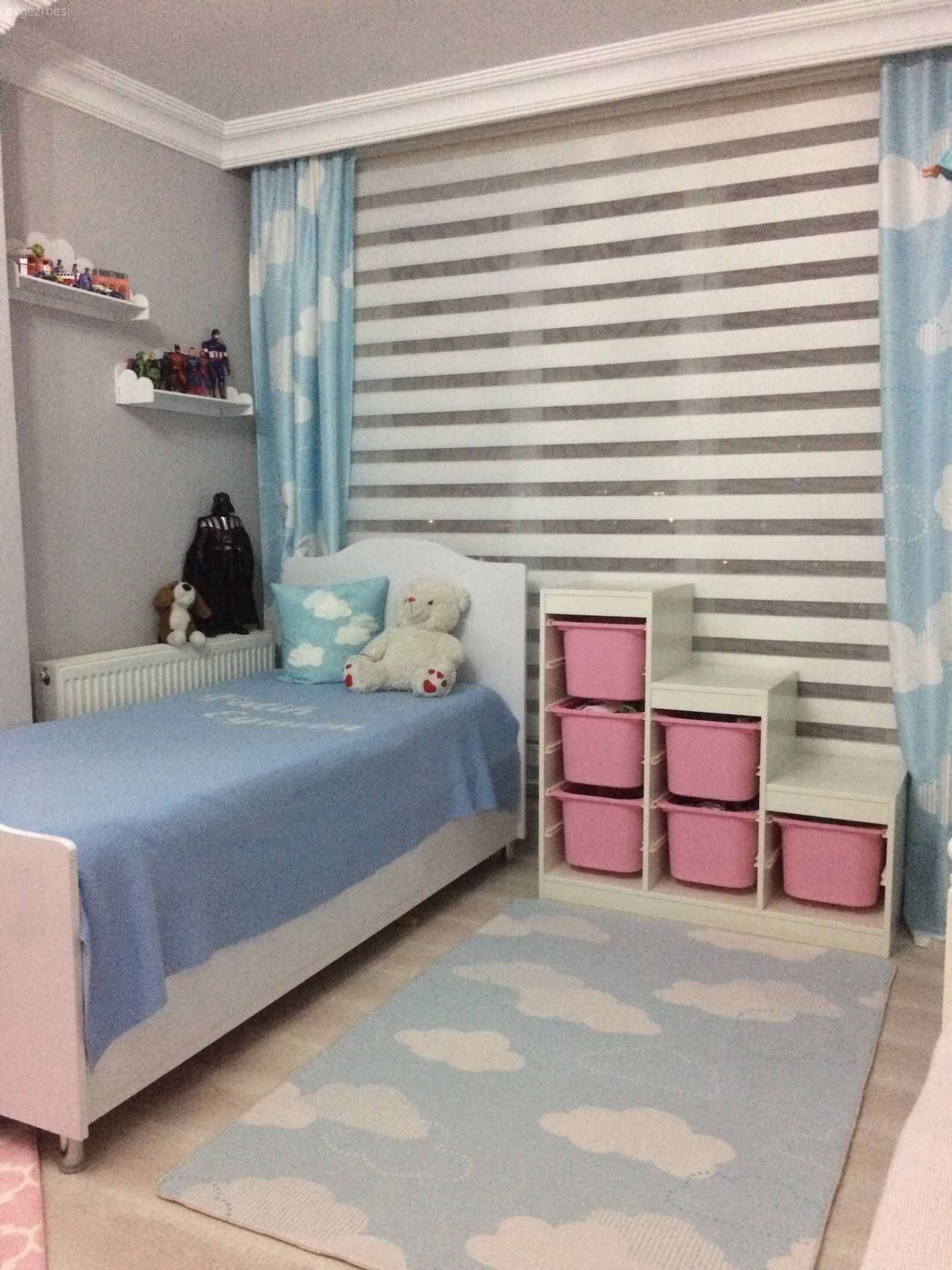 Ben çok beğendim hanımefendi ,bende bu ara 2 oğluma oda yapım aşamasındayım ,eksiklerim tamamlanmadı Hala,bitince burda paylaşacağım ,ben sepetli dolabı nerden aldığınızı sormak istiyorum,oğlunuzu yatağı baza mı karyola mı ,özem yapım mı ,fonlar ben halının uyumuna bayıldım güzel bi fikir Benin için ,onlar nerden aldınız caba