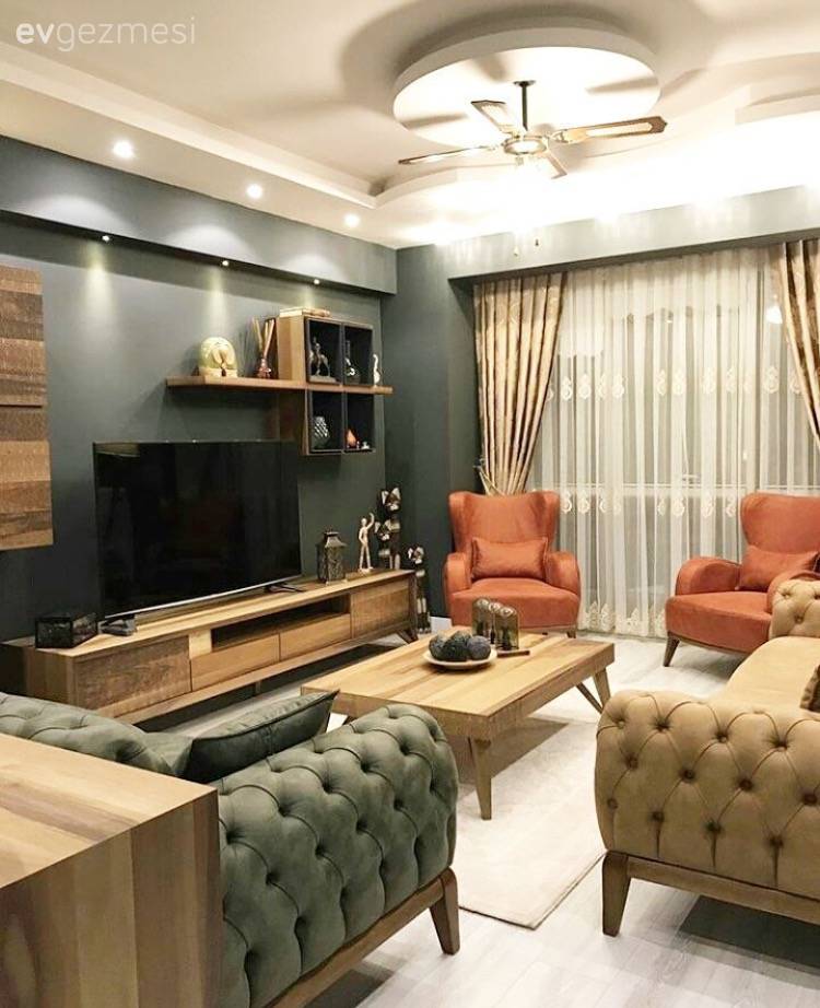 Endüstriyel esintili mobilyalar, rustik aydınlatmalar ve koyu renkli koltukların oluşturduğu maskülen görünüm, morun yumuşak tonu ile keskinliğini kaybediyor. Ev sahibimiz sade çizgiden vazgeçmediği evinde, dengeli ve konforlu bir görünüm yakalıyor.