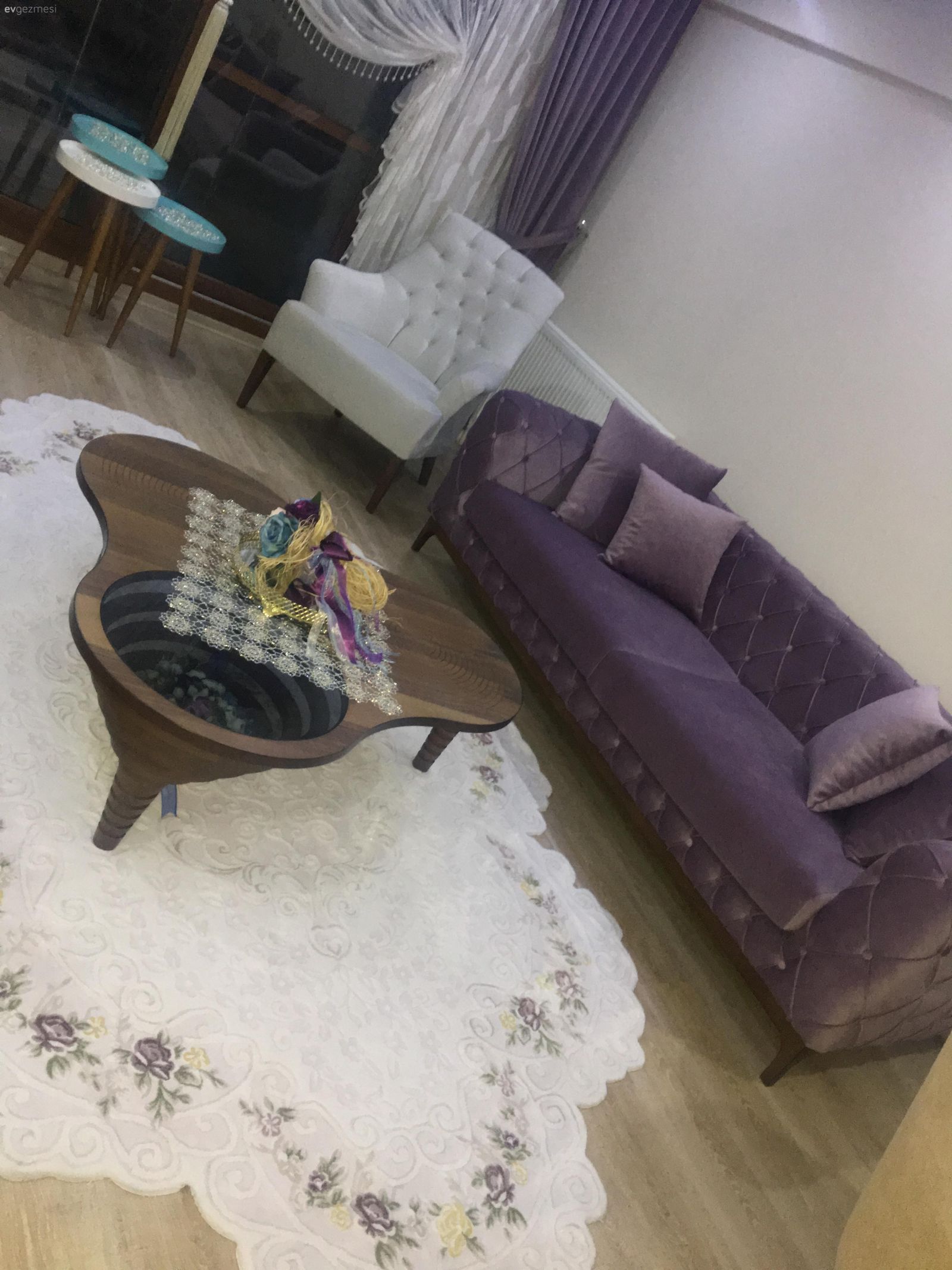 Salon halısı değişik ama sizin salona uymamış konsolun üstü hoş olmamış konsol hoş ama daha sade ve değişik bir kaç obje olmalı benim fikrim tabii mutlulukla oturun