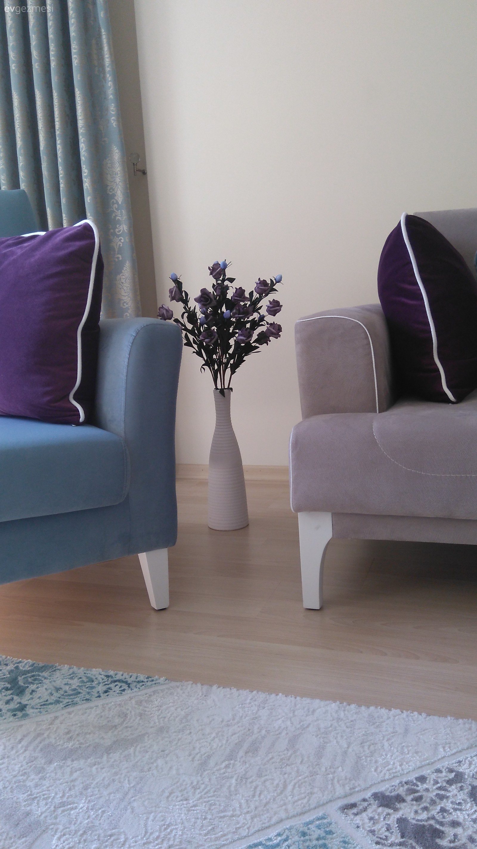 Koltuk gri mi vizon mu? Benim salon renklerime çok benziyor. Acaba bende biraz mürdüm karıştırsam boyle hoş durur mu :)