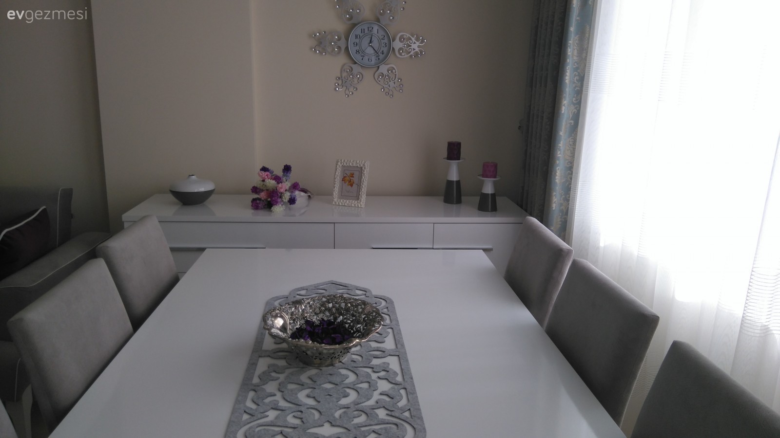 En zahmetsiz değişim tavsiyem<br /> 1- Yemek masasının yerini değiştirin<br /> 2- Duvar renginizi değiştirin :)<br /> Güle güle oturun