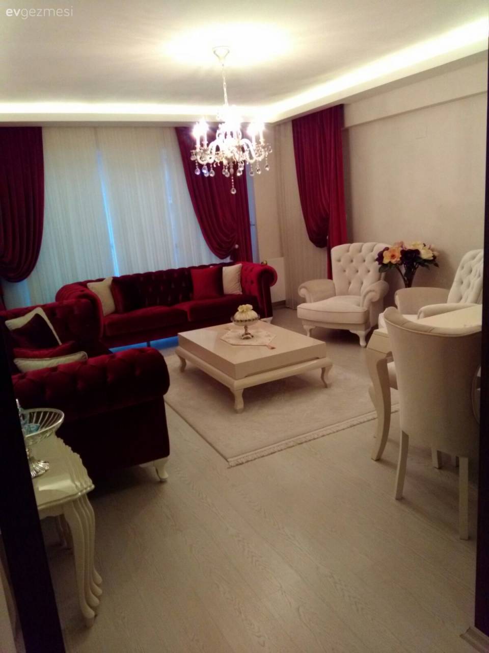 Kremin altın detaylarla tamamlandığı renk paletinde, mobilyaların şıklığı avizeler, aksesuarlar ve tekstil ürünleri ile daha da göz alıcı. Şefika hanımın şık salonuna buyrun konuk olalım..