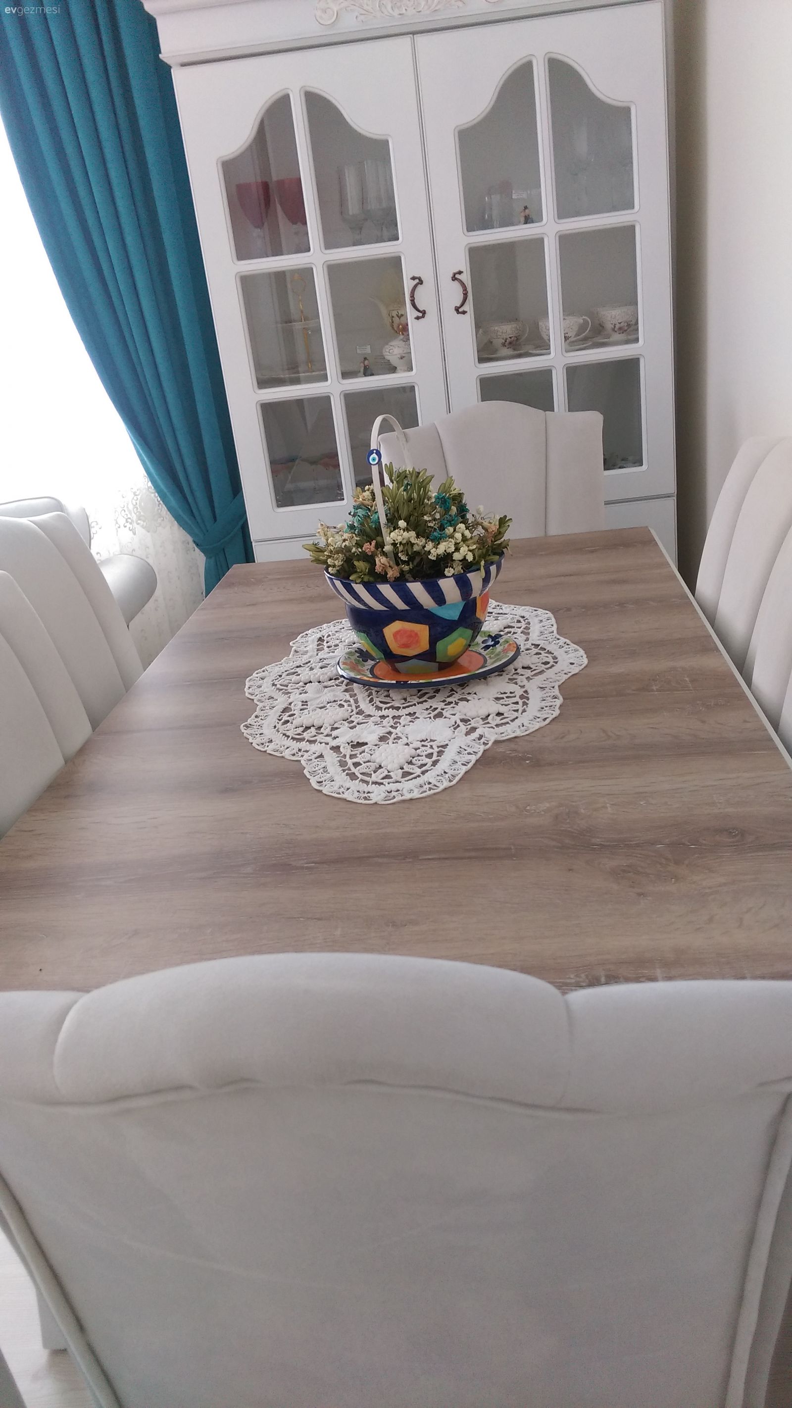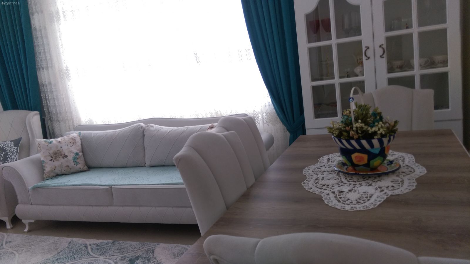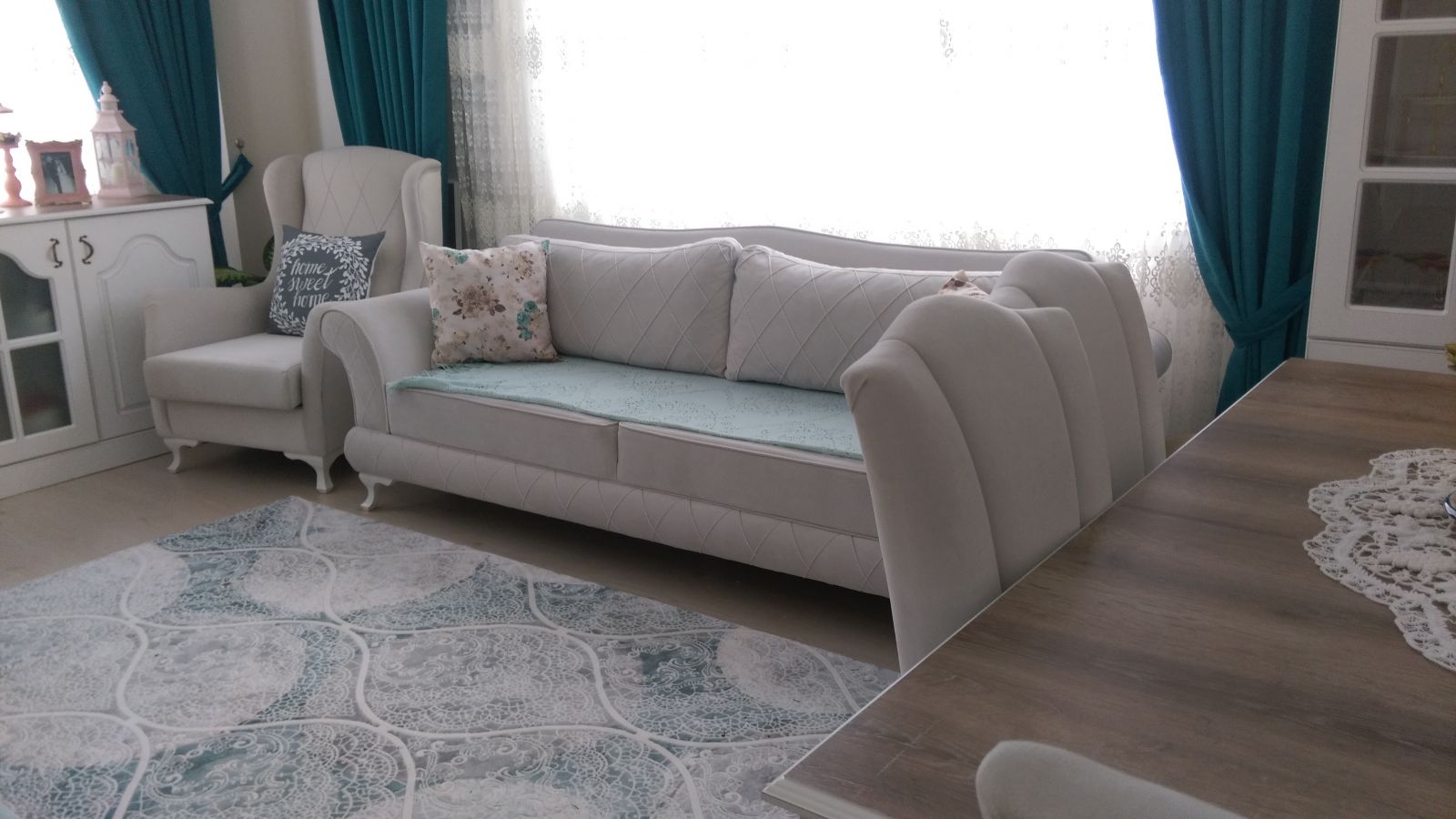 Güle güle oturun, renk uyumunuz çok hoş. Canınız sıkıldığında farklı renklerle de kombinleme imkanı sağlıyan mobilya seçmişsiniz. Komidinle masanın yerini değiş tokuş yapsanız hem perdeleriniz masanıza hoş bir çerceve oluşturur hemde komidin ve Vitrin birbirini görür. Komidinin üstünede güzel dekorativ tablo yada ayna asma imkanınız olur. Koltukları biraz daha kapıya doğru çeke bilirseniz berjerleri de duvarda oluşa bilcek boşluklara asimetrik koyma şansınız olursa odanın çok düz simetrisini kıra bilirsiniz sanki. Odanızın genişliği resimden pek anlaşılmıyor. O yüzden gördüğüm kadar yorumlıya bildim umarım size fikir olmuştur. Saygılar Gülper