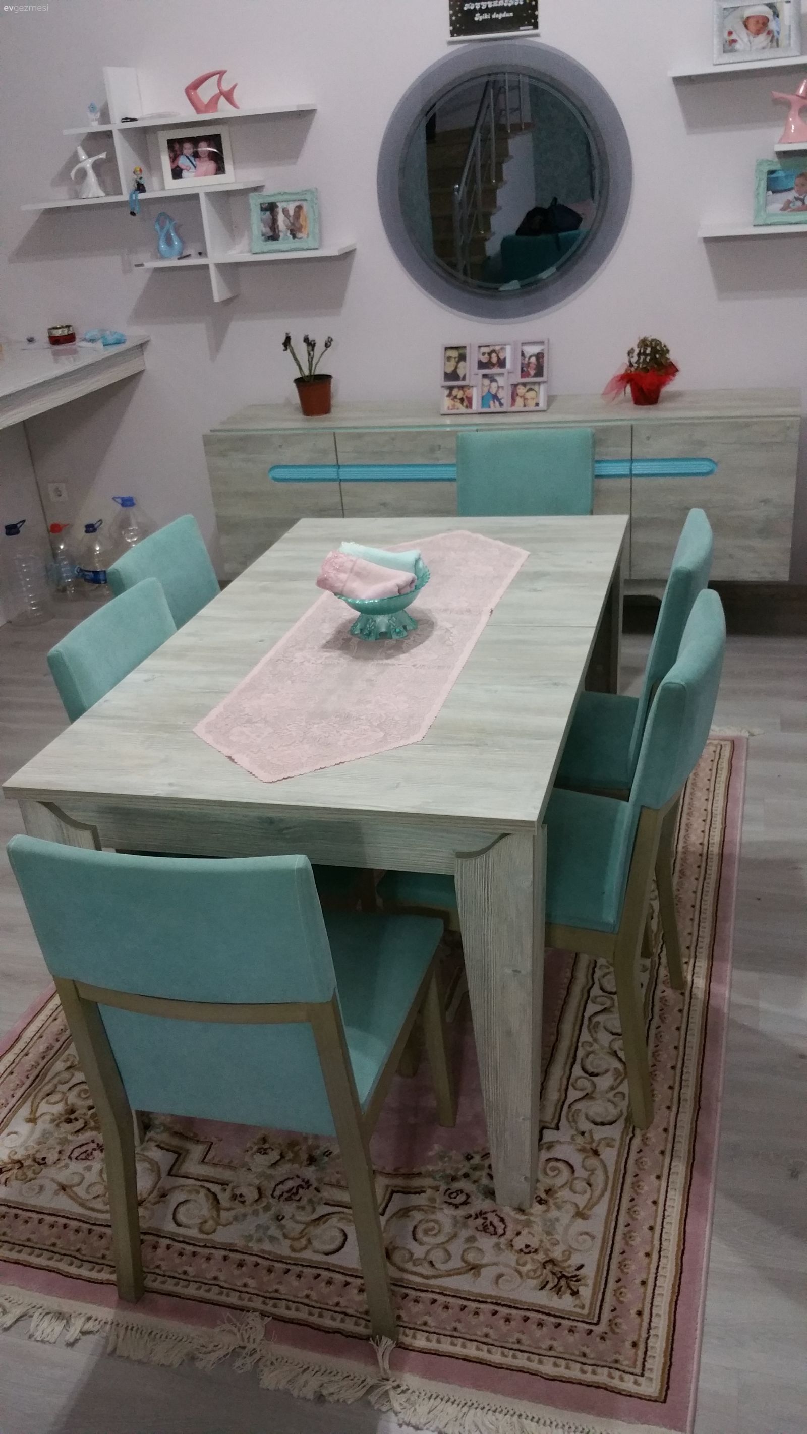 Yeni bir ev aldık elimizdeki para bir yemek odası almaya yetmiyor mevcut yemek odam mint yeşili spor takım ama salona sectigimi takım bebe mavi gold klasik tarzı bi mobilya . Bu yemek takimini sandalyeleri kapatırım belki ama masa ve konsolu nasıl uydurabilirim klasik takıma imkanı var mı acaba