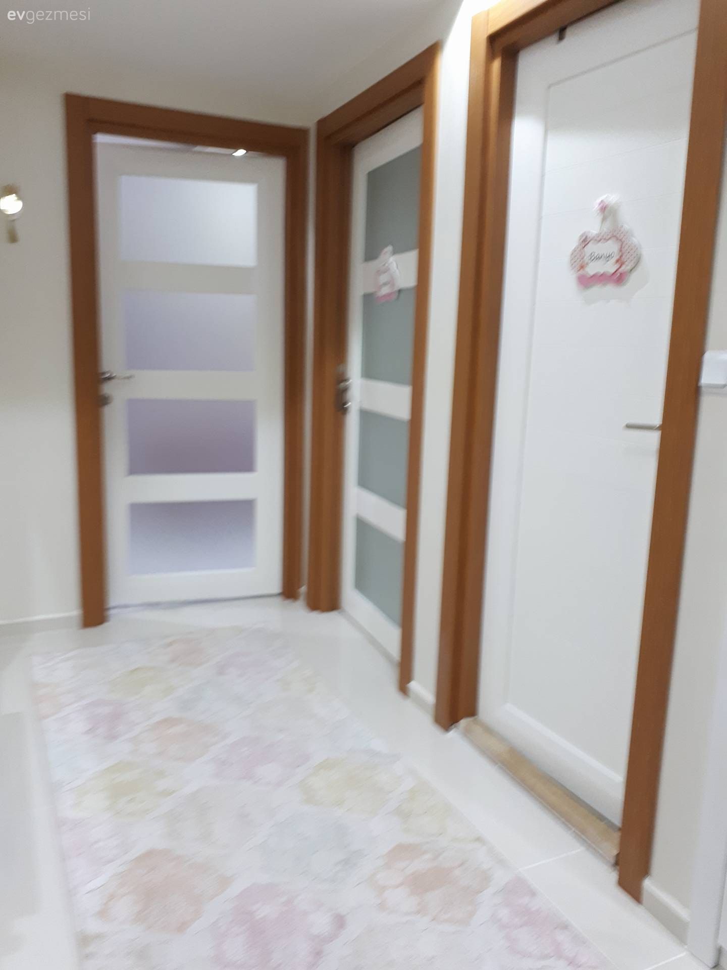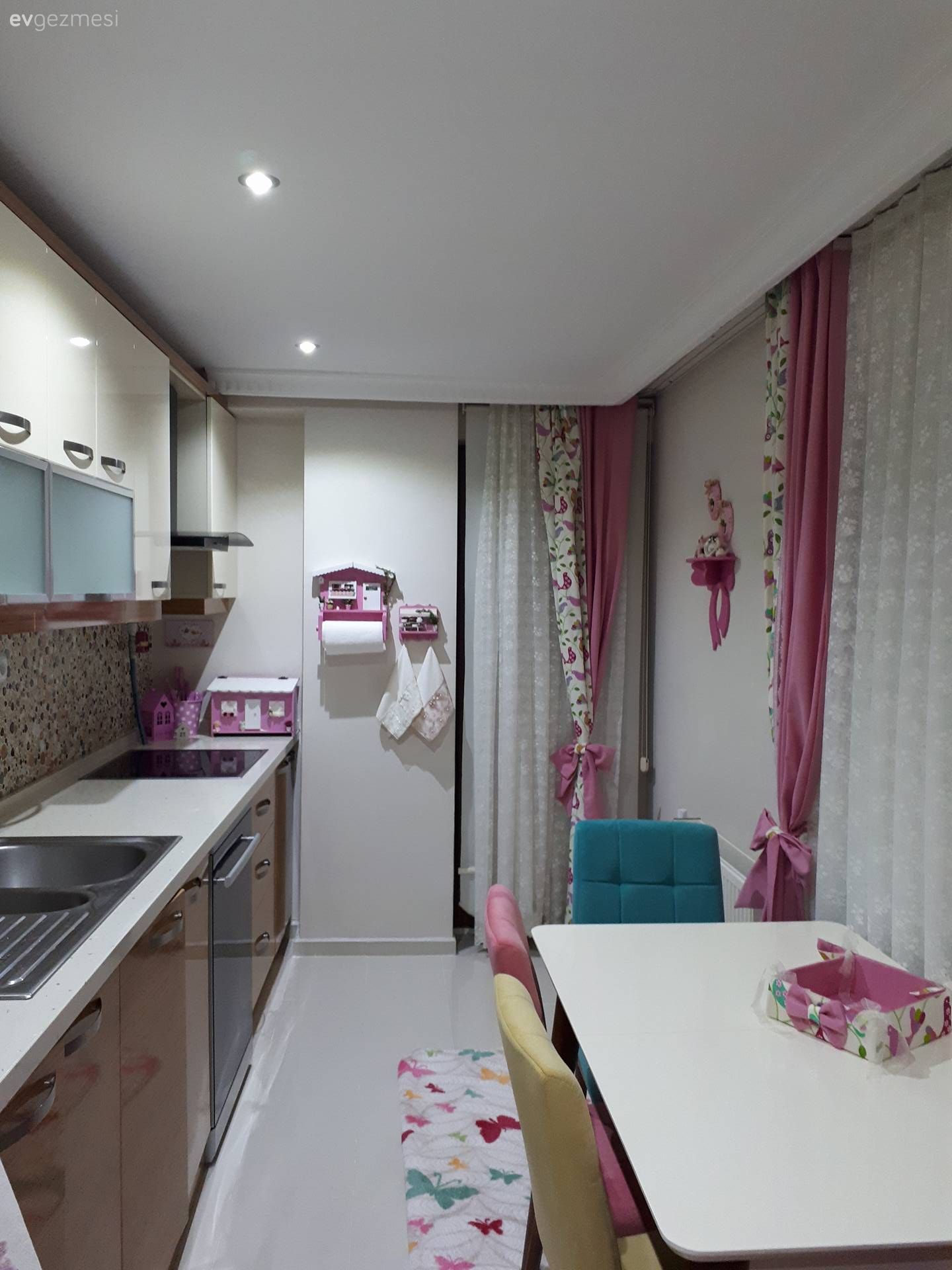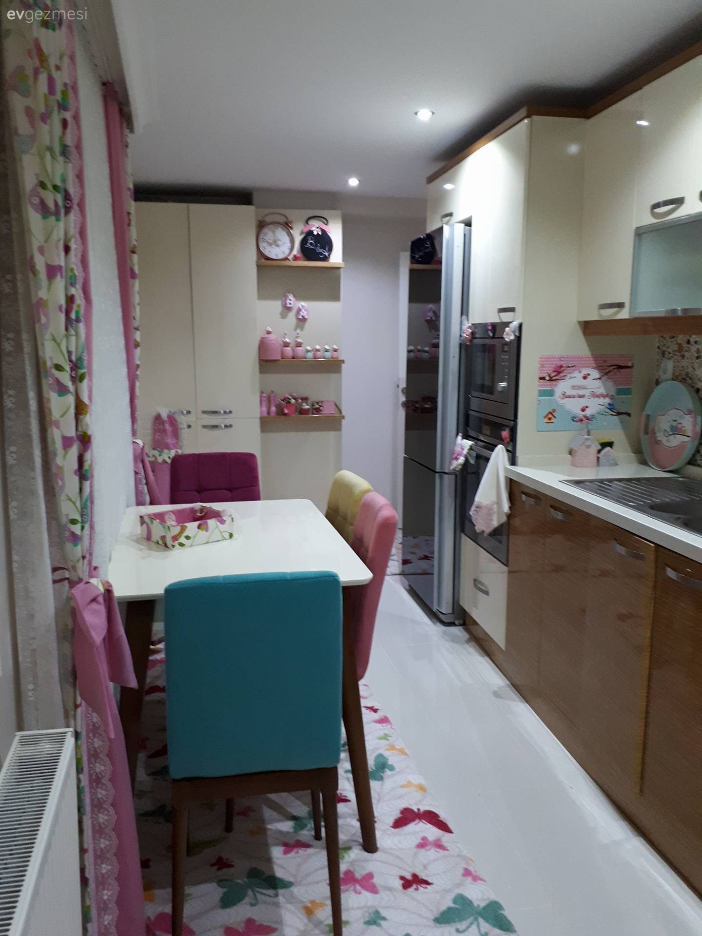 Eşyalar güzel ama nedense sıkışık görünüyor. Yerleşimde mi bir problem var anlamadım. Kapı pervazlarının kahverengi olması da keskin sert bir görüntü oluşturmuş. Kapının renginde olsa bütünlük sağlardı. Aksesuarların da sadeleşmesi halinde ev biraz ferahlayacak özellikle mutfak ve banyo.