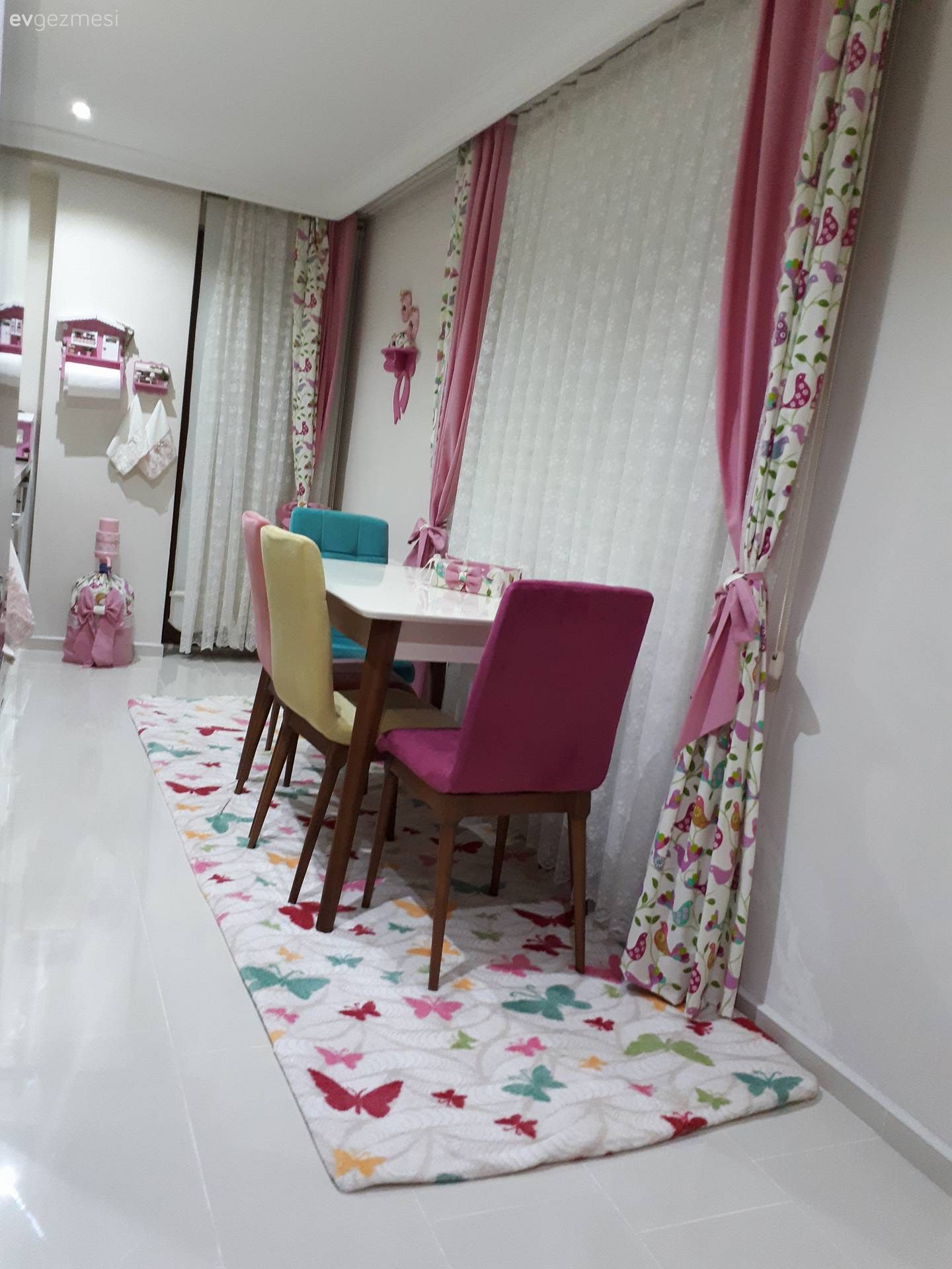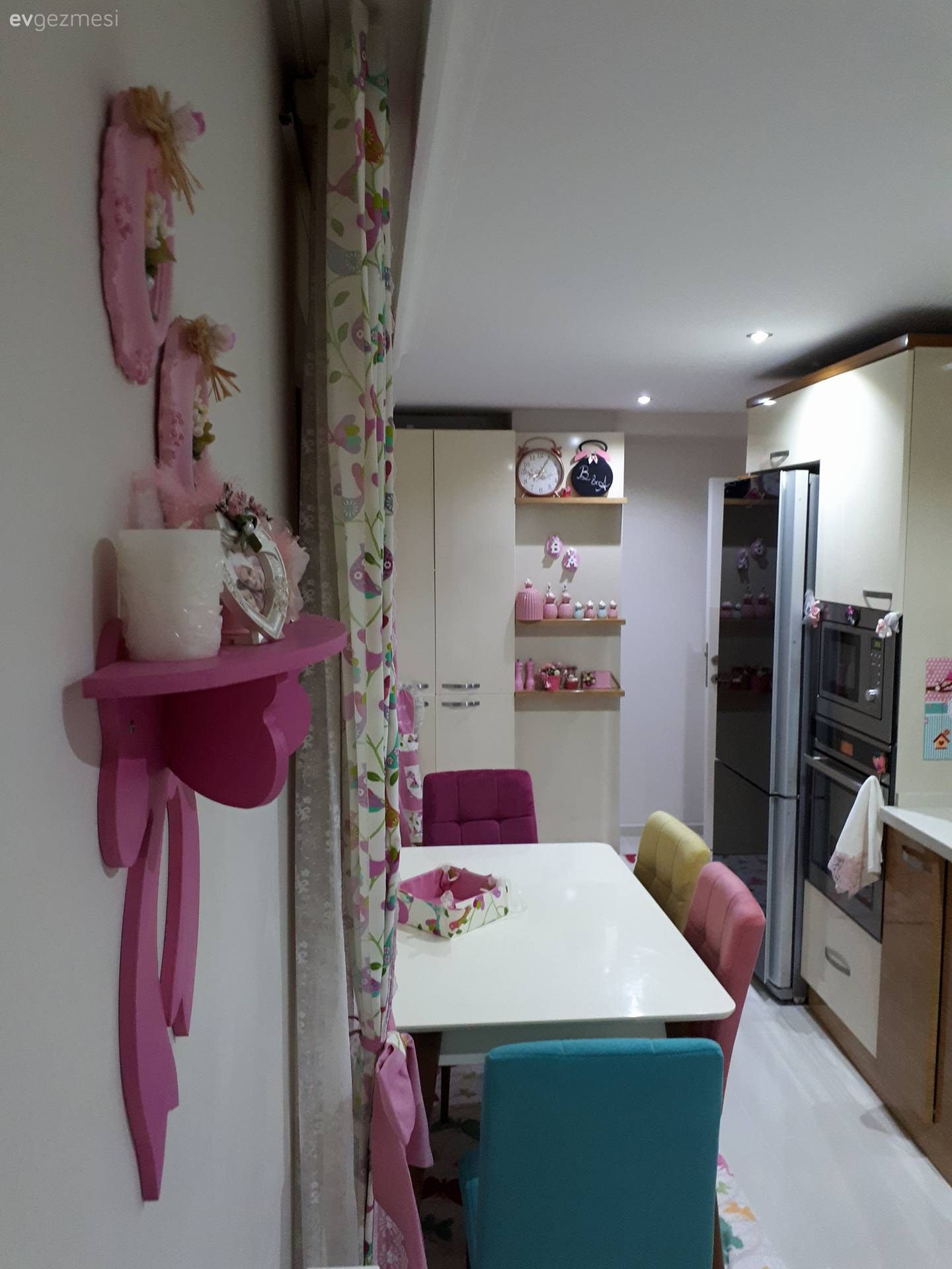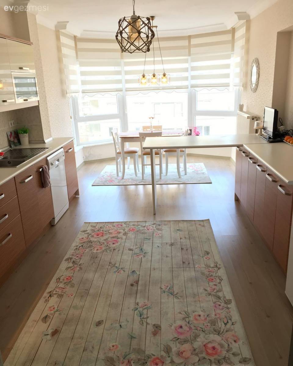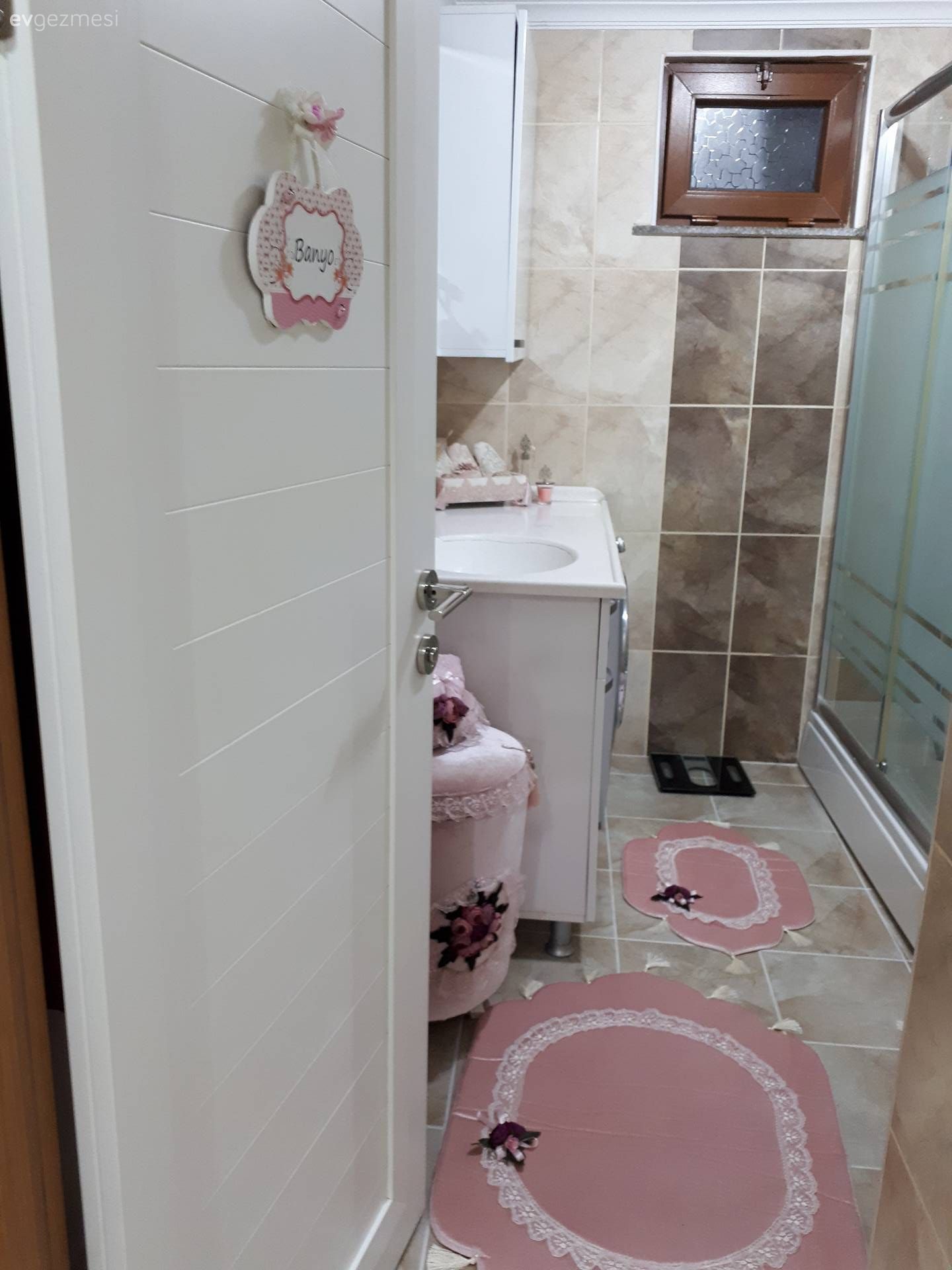 Eşyalar güzel ama nedense sıkışık görünüyor. Yerleşimde mi bir problem var anlamadım. Kapı pervazlarının kahverengi olması da keskin sert bir görüntü oluşturmuş. Kapının renginde olsa bütünlük sağlardı. Aksesuarların da sadeleşmesi halinde ev biraz ferahlayacak özellikle mutfak ve banyo.