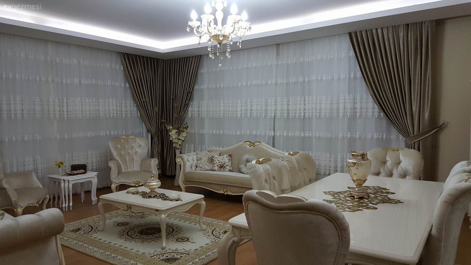 Daha önce evine konuk olduğumuz Leyla hanım, evinde ufak değişimler yapmış. Yeni aksesuarlarıyla beraber masa ortası canlı çiçekleri, servisi ve peçeteliğiyle her detayına özendiği bir de zevkli sofrasını bizler için fotoğraflamış. Buyrun şık evine konuk olalım..