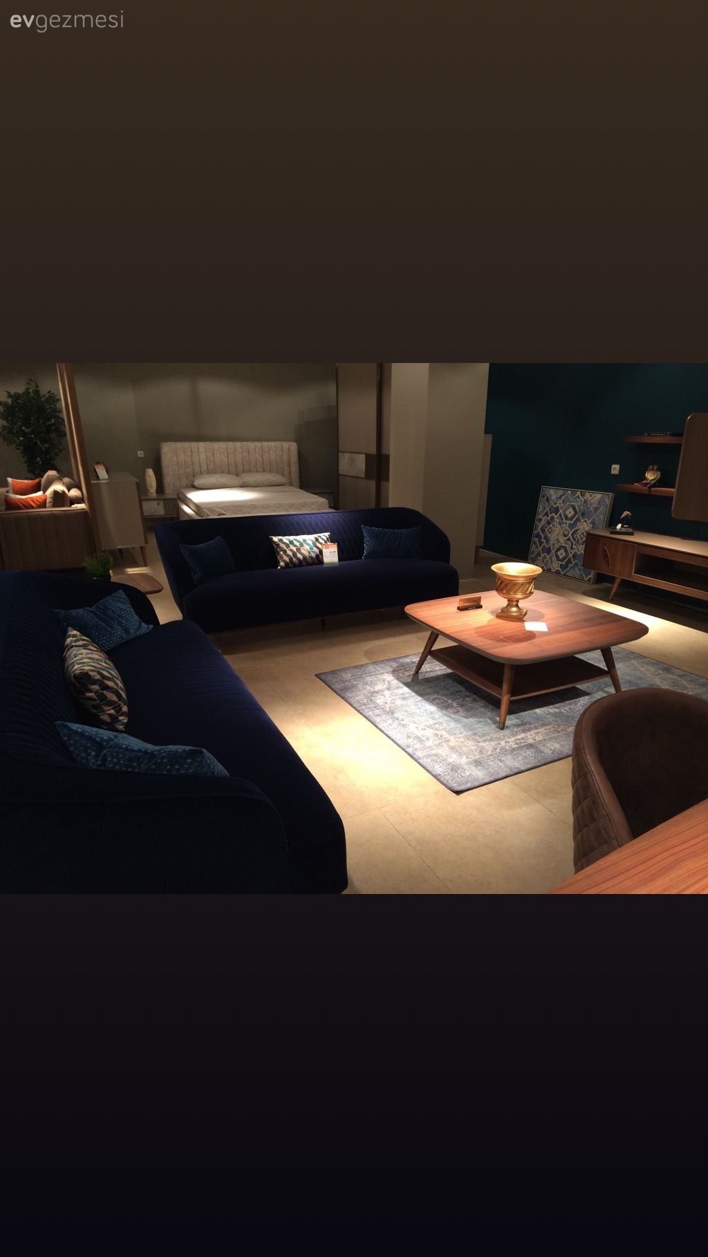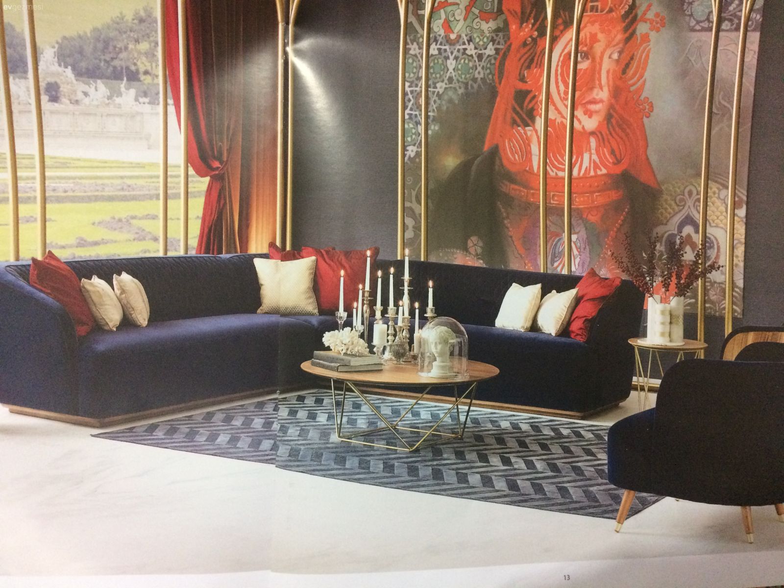 Bol güneş alan,aydınlık bir salonunuz varsa lacivert olan köşe koltuğu tavsiye ederim.Berjerini de alın ve altın rengi aksesuarlarla tamamlayın.Resimde uygulanan kırmızı detaylar da çok hoş çok çarpıcı.