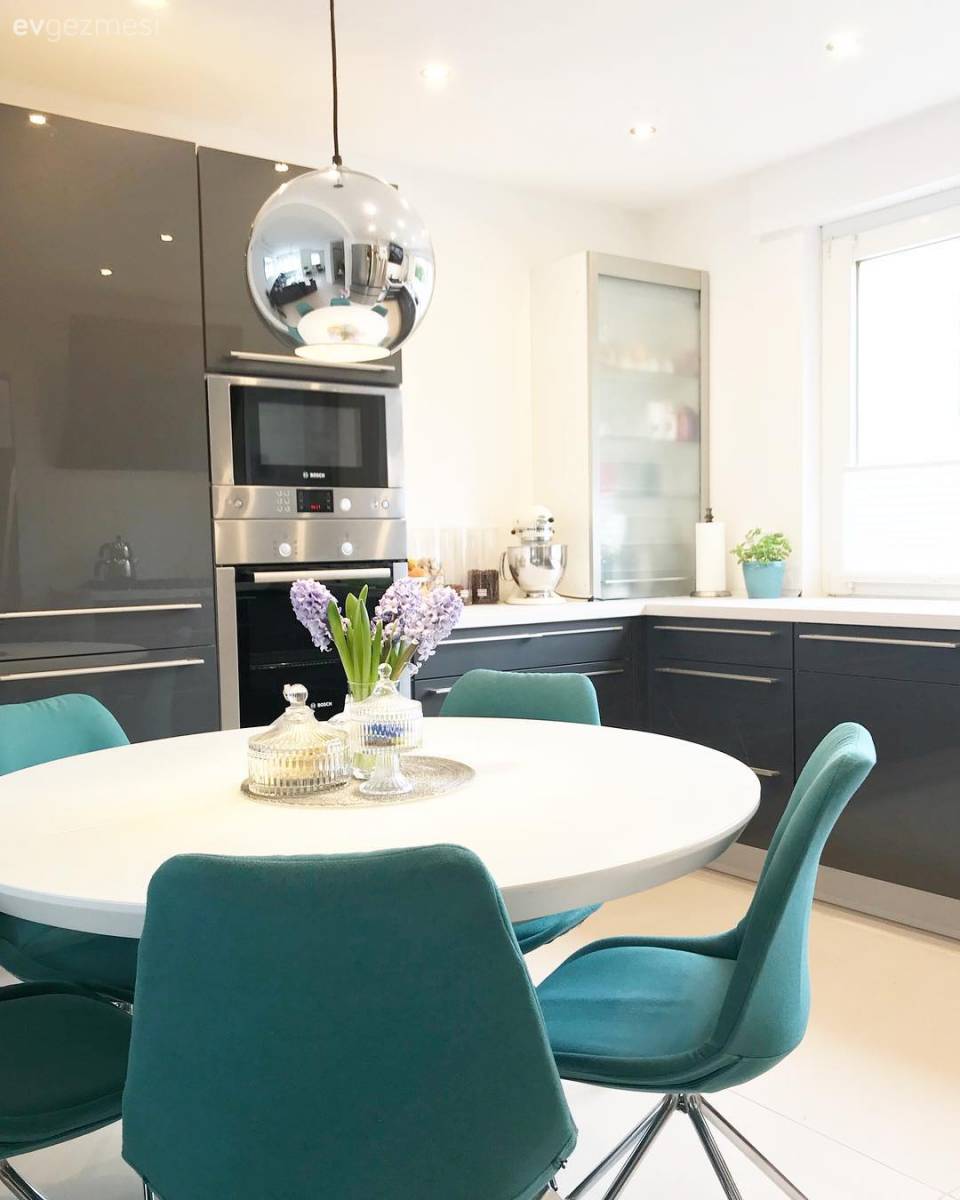 Ebral hanımın mobilya seçimlerindeki sadelik, aksesuarlarla kimlik kazanıyor. Sıcak ve serin renkleri beraber kullandığı evinde, dengeli ve huzur verici bir dekor yakalanıyor.