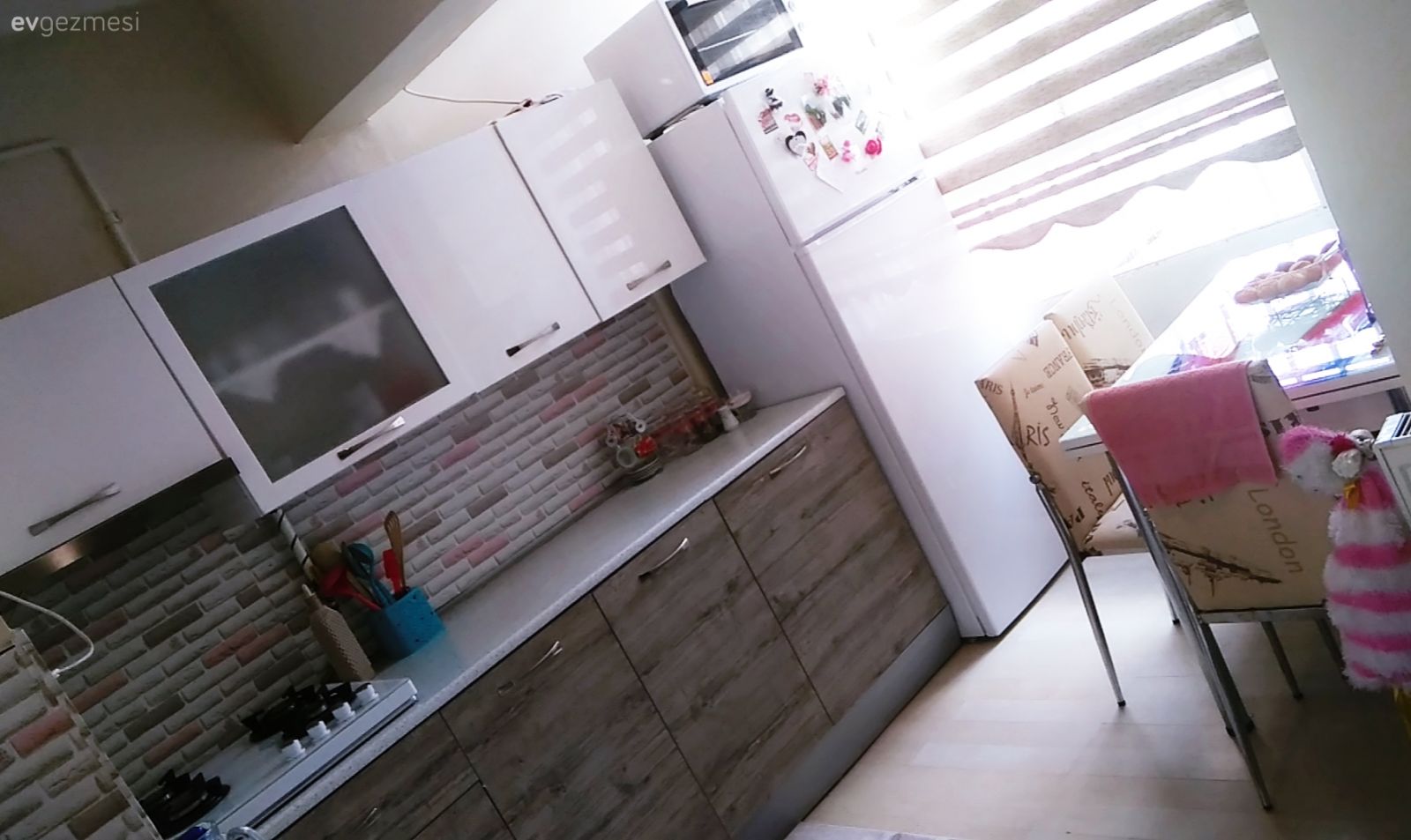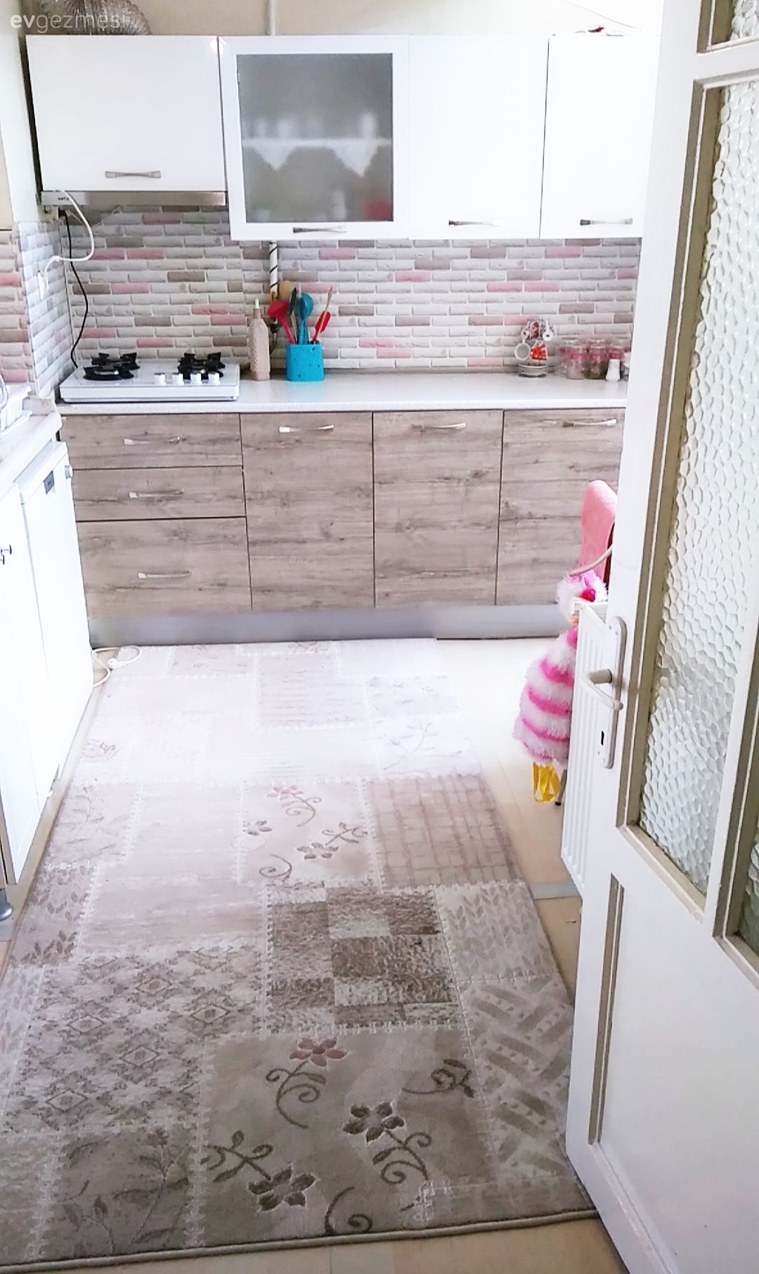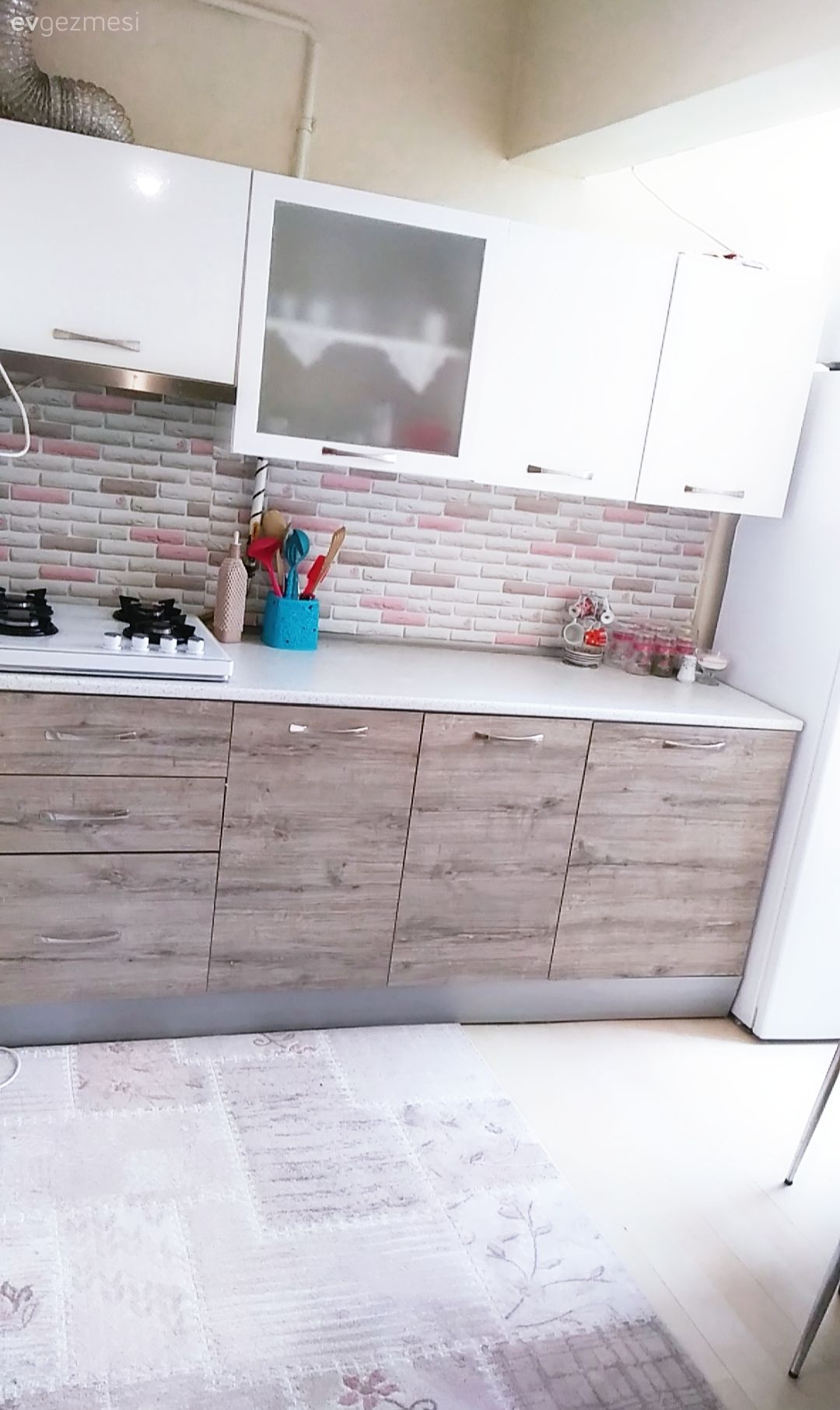 Merhaba Esra hanım berraatahana katılıyorum görünümü bozan tezgah arası ve masa sandalyeniz; dolaplarınız ve halınız güzel birbiriyle uyumlu ama folyonuz ve masanız çok karışık renkli ve birbirinden apayrı olduğu için dengeyi saptırmış... tezgah arasını düz renk yaparsanız ve sandalyelerinize düz renk kılflar geçirirseniz ve masanızı da uyumlu hoş bir örtüyle kapatırsanız büyük ihtimalle daha çok seveceksiniz nacizane fikrim, ayrıca buzdolabı süslerini petekte asılı olan (sanırım poşet torbası) eşyanızı ve pembe havlunuzu görünümden kaldırırsanız daha hoş olcaktır ve son öneri dolaplarınızın üstü çok müsait kara tahta yazılı ya da mutfağa uyumlu tablolarla hareketlendirebilirsiniz sağlıklı günler diliyorum