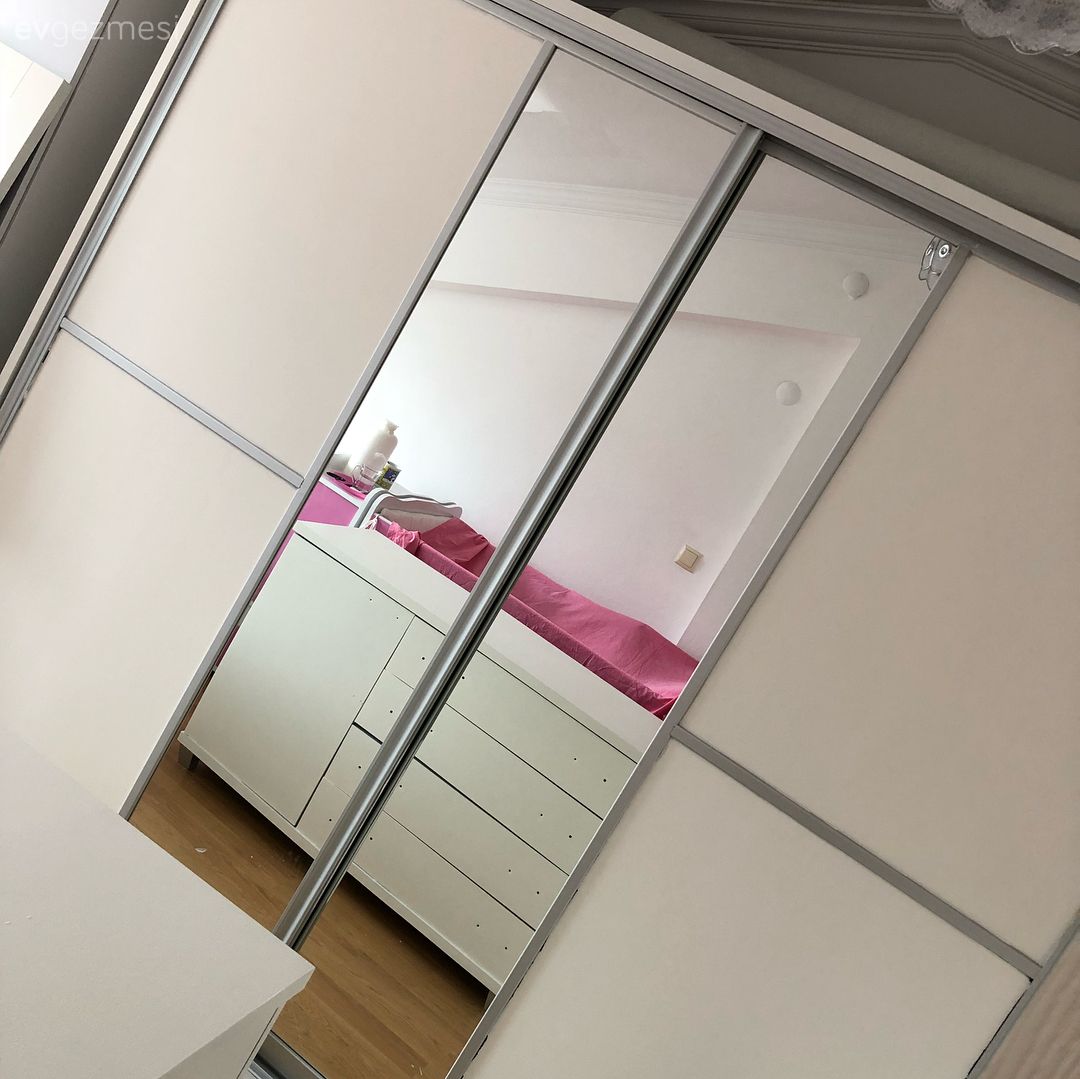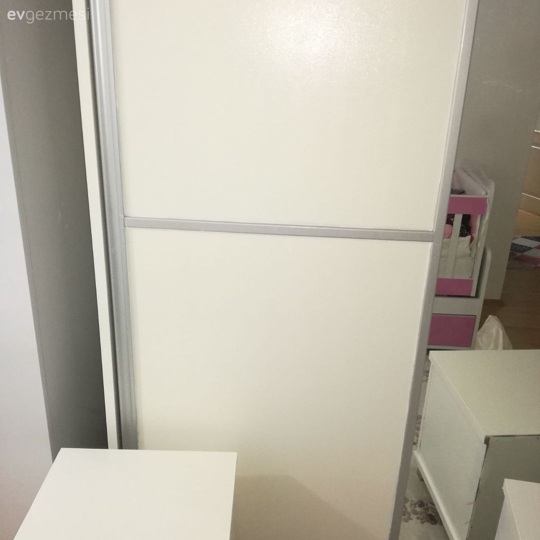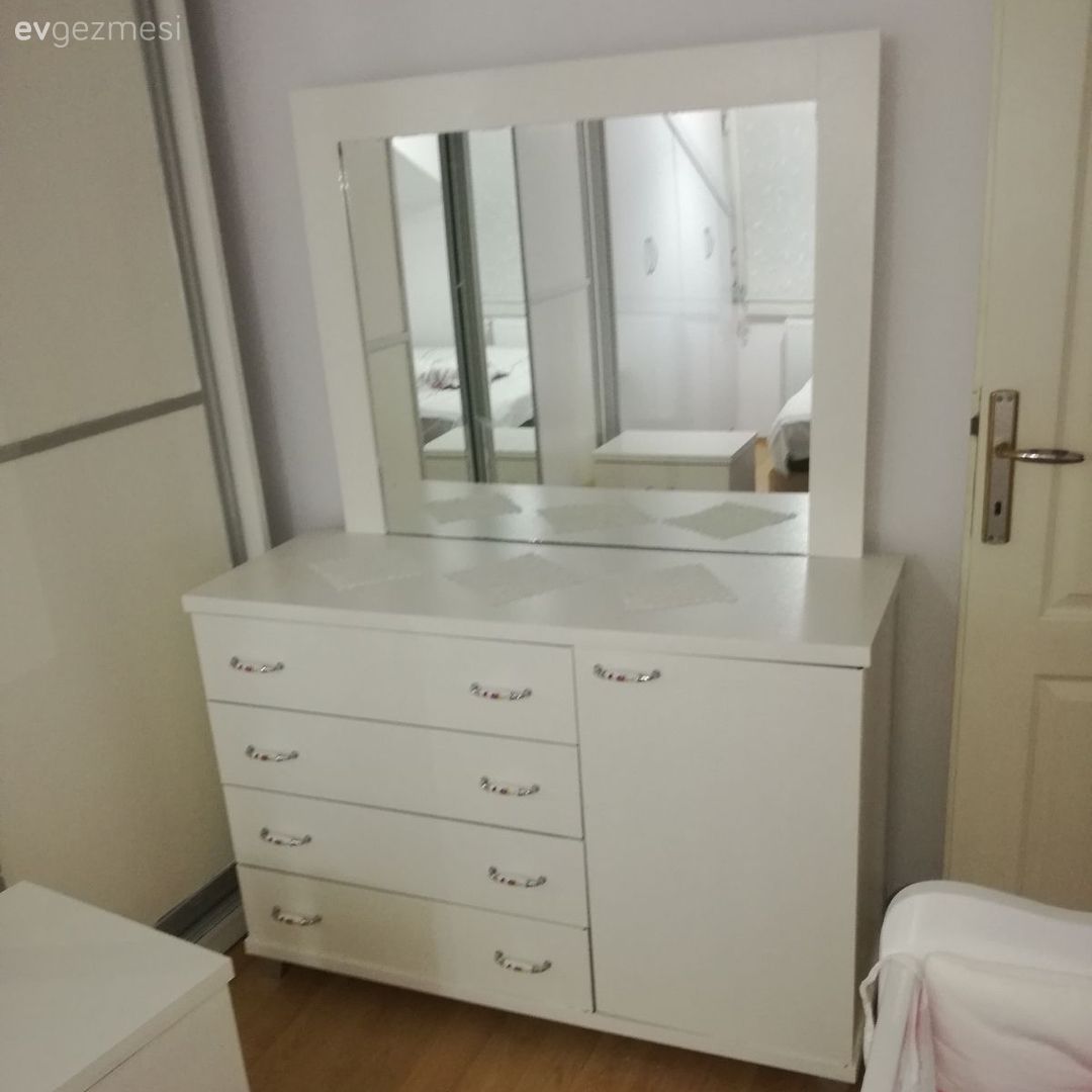 Yatak odası mobilyalarının boyamaları ise Kübra hanımın başkaları için yaptığı bir çalışma. Kırık bir beyaza boyandıktan sonra porselen kulplarla tamamlanmış dönüşüm.