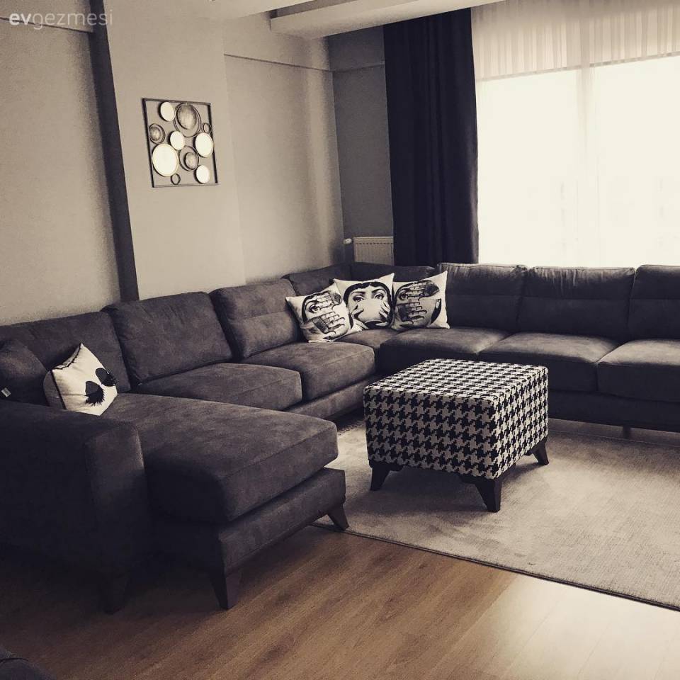 Bahar hanımın mobilyalarını yenilerken, eklediği farklı dekoratif uygulama ve aksesuarlar, dekoru zenginleştirmiş; göz alıcı ve şık bir hava katmış. Öncesinden de kareleri eklediğimiz salon, yeni dekoruyla tanınmaz halde.