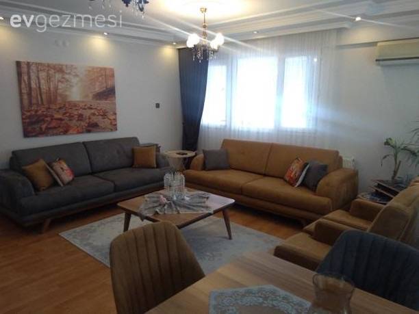 Uzun süren kararsızlık sonrası bir cesaretle değişim zamanı demiş ve alanın dekorun tamamen değiştirmiş. Küçük değişimlerle dekoru değiştirmenin en güzel yollarından birisi, alana yeni dokular, yeni aksesuarlar katmak. Parlak kumaşlar, şık baskı desenler ve yeni renkler, bu ev için harika seçenekler olmuş. Altın, yeni dekorun odağında.. Hem aksesuarlarda, hem kırlent, runner ve fon perde gibi tekstil ürünlerinde bu renk ön planda.. Orta sehpa üzerinde yine yeni dekorun şıklığını uyumlu aksesuarlar var. Zemin üzerinde ise içinde çiçeklerle büyük boyutlu vazo dikkat çekici.