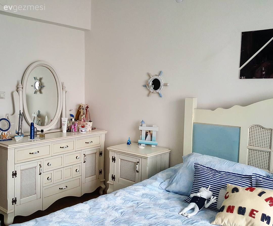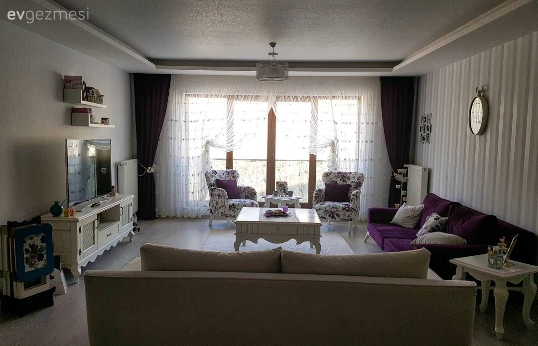 Damla hanımın evinde pencerelerden sızan ışık, nostaljik esintiler taşıyan mobilyalara vuruyor; ortaya bu zarif ve romantik atmosfere sahip ev çıkıyor.