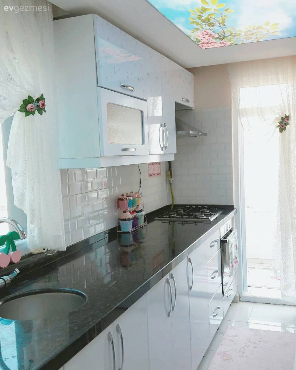Mutfak tasarımında estetik kadar kullanışlılık da ön planda. Her metrekare iyi değerlenmiş, mutfakta bolca depolama alanı elde edilmiş. Tezgah üstünde kullandığı ev aletlerinde renkli seçimlerle dekoratif bir görünüm de yakalamış Gülşah hanım. Buyrun evine konuk olalım..