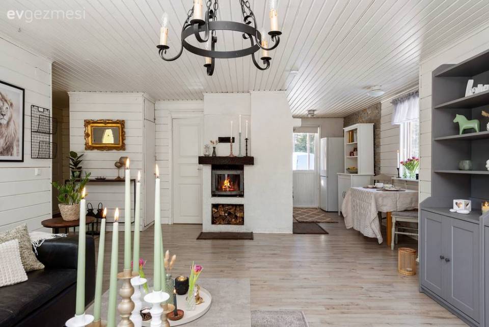 Yeni taşındıkları evlerinin tadilatında, plandan, tasarıma her detay ev sahibimizin özel seçimleriyle şekillenmiş. El emeği şeyler üretmeyi sevince, kendi evinde de tasarımları yer buluyor. Hol dekoru tamamen el emeği. Gri ve beyaz uyumu, duvar dekorlarıyla bu köşe ev sahibimizin de favorisi olmuş.