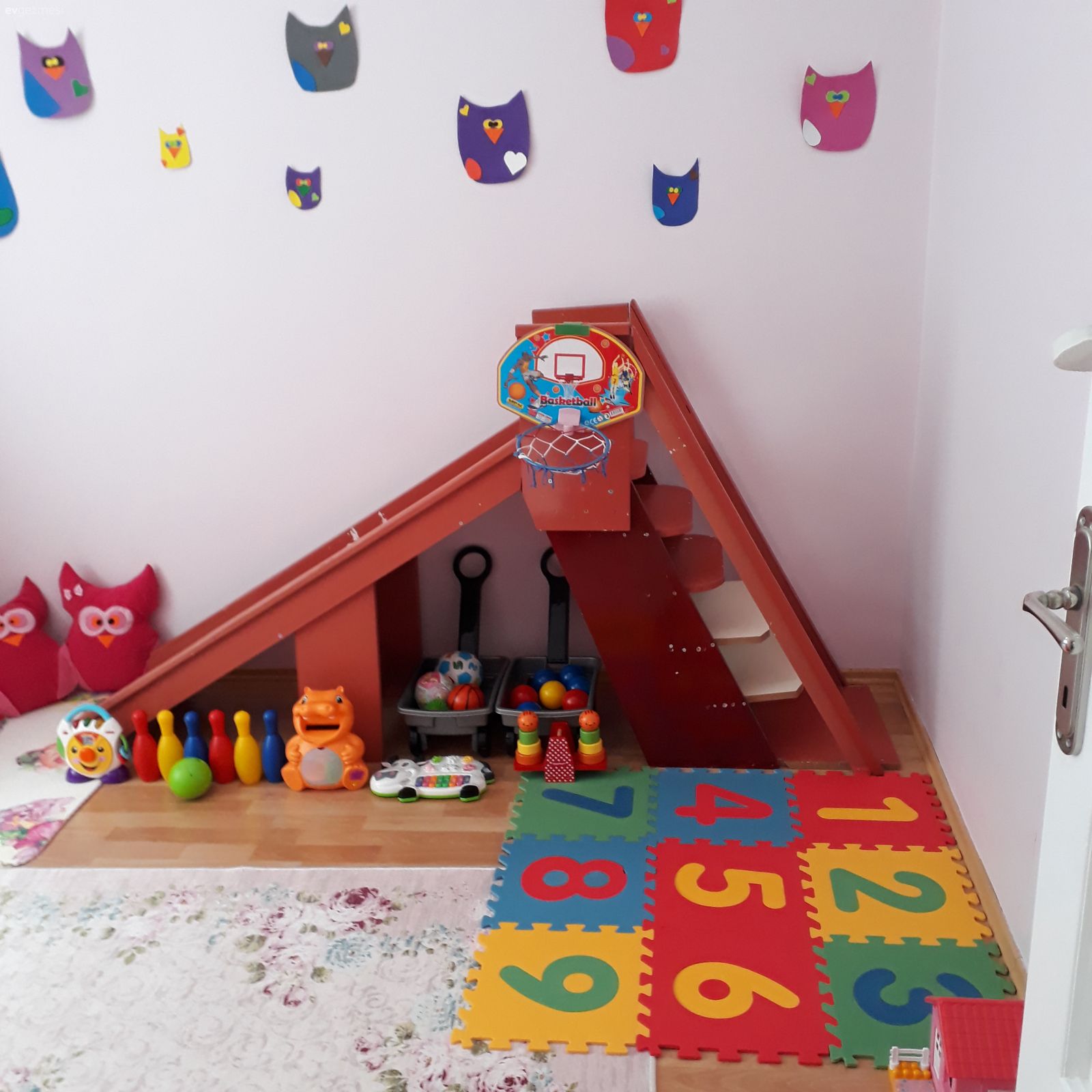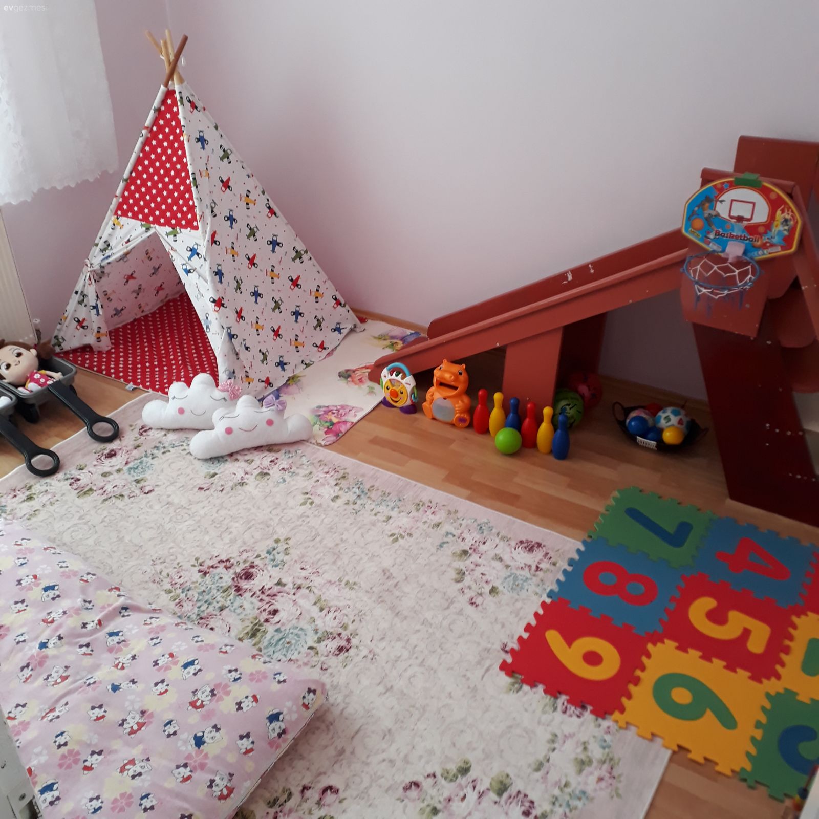 Kızlarımız henüz 6 aylıkken taşındık bu eve. ilk başlarda fazla esya odasi yaptığımız bu odayı kızlarımız büyüdükçe daha fazla alanları olsun diye oyun odasına dönüştürmeye karar verdik. Ahşap kaydırak eşimin ve çocukların amcasının el emeği, oyun minderinin yapımı anneme ait duvardaki baykuşları da cok sevdikleri icin kızlarımla birlikte yaptık. Şimdi iyi ki de yapmışız diyoruz odalarından başka oynayabilecegimiz güzel vakit gecirdigimiz bir oda daha olmuş oldu. Oyun odası yapmak isteyenlere fikir olsun.