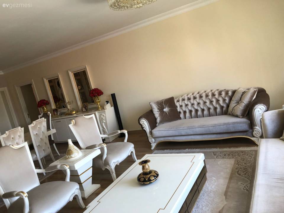 Bej ve beyazın sadeliğine, nötr tonların sakin ve davetkar hissine evinde yer vermiş Öznur hanım. Salon dekorunda bu sade renk paleti, fon perdeler ve halıda farklı desenler ve dokularla tamamlanarak monotonluktan uzaklaşmış. Sade olduğu kadar heyecan da verici bir ortam yakalanmış.