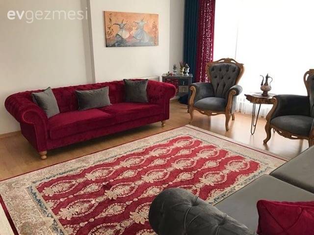 Eklektik bir tasarım, mobilya ve dekor unsurları ile çeşitli stilleri ve dönemleri bir araya getiriyor. Bu stil, kişisel estetik anlayışınızı yansıtmanın mükemmel bir yolunu sağlar.. Renk, doku ve tasarımdan farklı parça çeşitliliği, bir araya getirildiğinde ritim bulmaya ihtiyaç duyar. Bu, odaya bir odak noktası oluşturup mobilya ve aksesuar parçaları arasında ortak bir zemin oluşturarak başarılır. Palet değişkenlik gösterebilir, ancak tüm elementleri birbirine bağlamak için birkaç nötrle yapışmak en iyisidir. Resmedilen kırmızı ve altın odada, paleti topraklamak için kremler ve kaşıklar kullanılır, böylece büyük tasarım pek çok renk tonu arasında kaybolmaz.