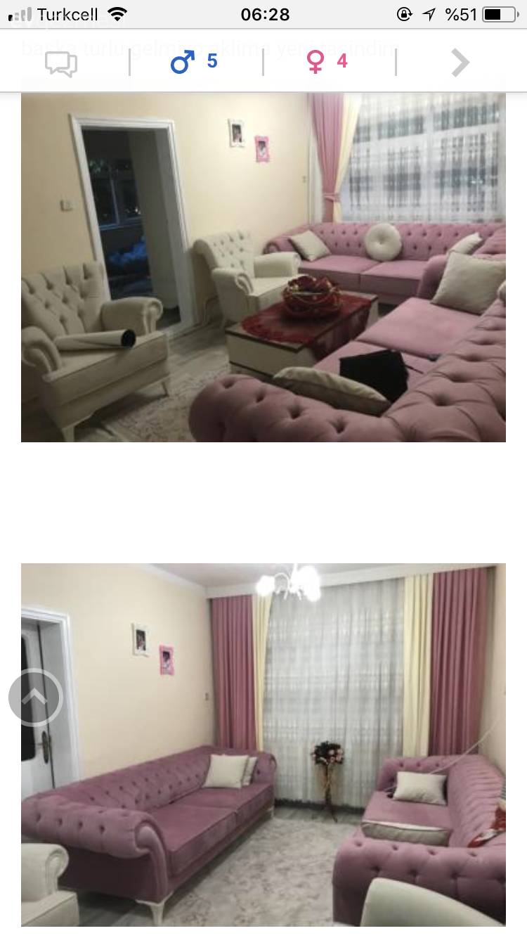 Fon perde, Köşe koltuk, Mavi, Oturma Odası, Pembe, Perde