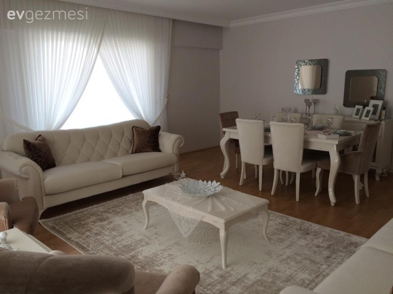 Biraz renk karmadasi olmus perdeler cok fazla olmus sanki butun duvari kaplamis sadece pencerelerde olsa sanki daha guzel olurdu halinin serilişi baya farklı evim şahanedeki gibi halı güzel koltuk güzel bide radyo falan hepsi aynı yerde olduğundan eşyalar kendini göstermiyo pek farklı yerlerde daha hoş durabilir
