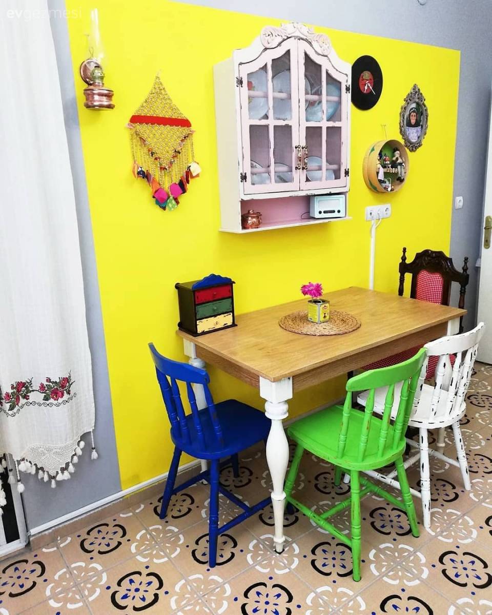 Detaylara onem verdiginiz belli oluyor.Gayet şık ve hoş bir eviniz var.Yalniz yemek masasi uzerindeki aksesuar ve hayvanciklar biraz fazla gibi göründü..Mutluluk dolu sofralar dlerim.