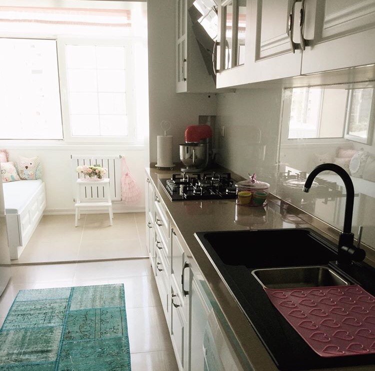 Ev sahibimiz derin mutfak blogunda, tariflerini, sunumlarını, kısaca mutfak maceralarını paylaşıyor. Tabi mutfağı da bu kadar güzel olunca, mutfakta zaman geçirmekten daha keyifli ne olur. Mutfak dolapları BMD mobilyaya yaptırılmış, tezgah Belenco marka, rengi ise Mocca Mousse, siyah evye ise Blanco marka, İstanbul Anadolu yakasında Atlas Mermer ve Granit'e yaptırılmış. Mutfağın güzel sediri ise alana özel yapım, mutfak dolapları ile de uyum içinde. Buyrun konuk olalım..