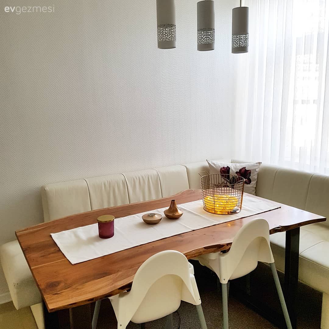 Şimdi konuk olduğumuz bu ev, tam da bu dediğimizi başaranlardan. Gösterişli parçalara, ihtiyaç fazlası büyük mobilyalara yer yok. Ama seçilen her bir parçanın işlevi var. Mutfakta bolca dolap alanı, bol tezgah var. Salonda ise konforlu bir köşe koltuk, dekorun odağında. Orta sehpa yerine, istendiğinde parçalara ayrılabilen, alt kısımda da sepetleri olan sehpalar kullanımda. Tv sehpası ile alan daraltılmamış; bunun yerine ahşap panellerle dekorun sıcaklığını tamamlayan bir bölüm tasarlanmış. Duvarda posterler ve zümrüt yeşili berjer uyum içinde.. Alan küçük, fazlalık kullanmayalım denmemiş. Harika dekoratif objelerle dekora heyecan katılmış. Buyrun konuk olalım..