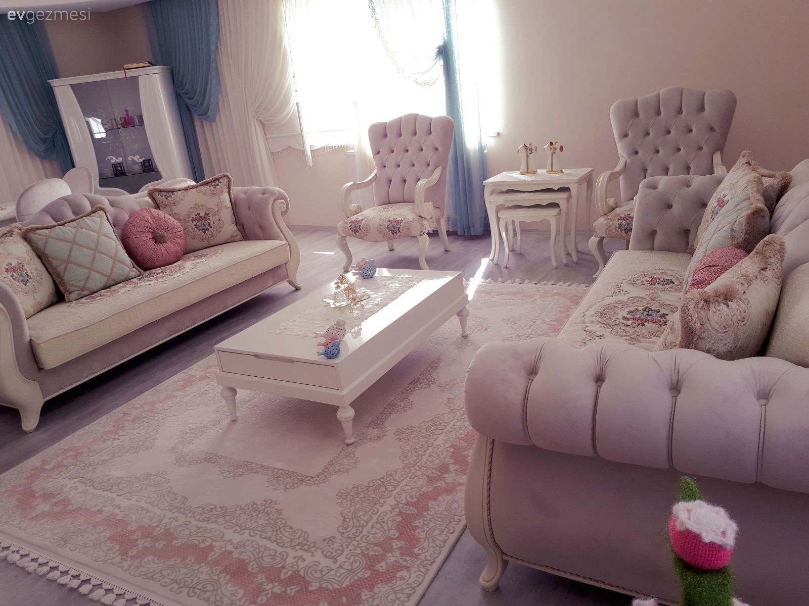 perdelerinize bayıldım çok harika bir seçim olmuş. koltuk kırlentlerinizi de yine koltuk döşemenizin renginde ve uçuk toz pembe tonlar güzel olacaktır bir kaç tane de payetli kırtlent koyarsanız da çok şık durur