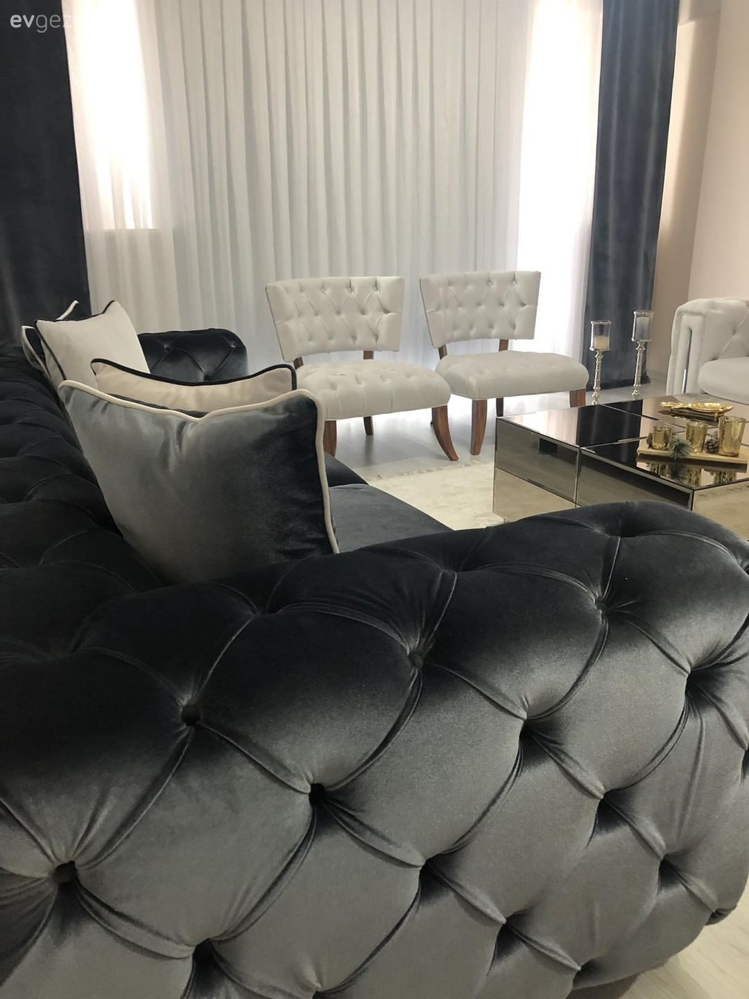 Altın renkli küreler, tabaklar, mumluk ve vazolar dekora şık dokunuş katan detaylar olmuş. Merve hanımın evi ve ev hayatı @mervehomee 'da. Buyrun konuk olalım..