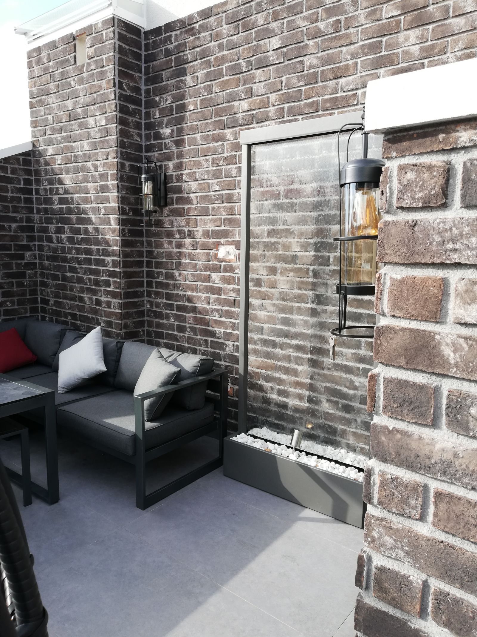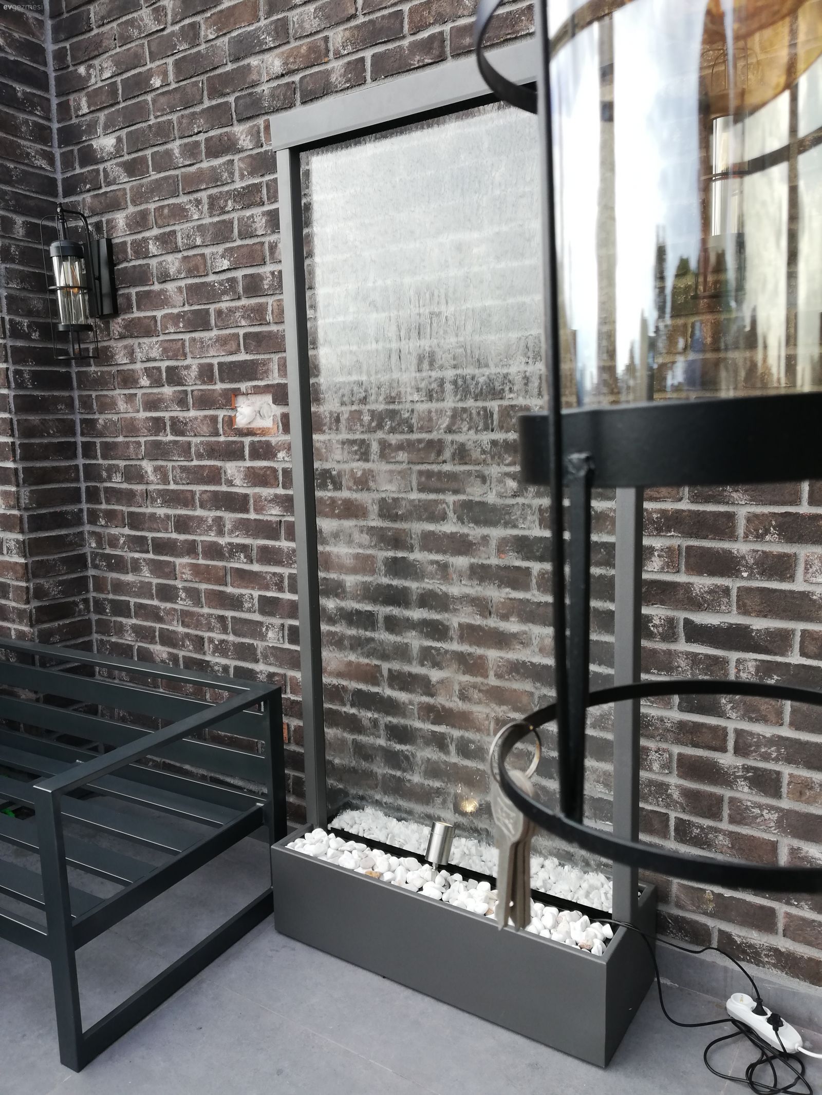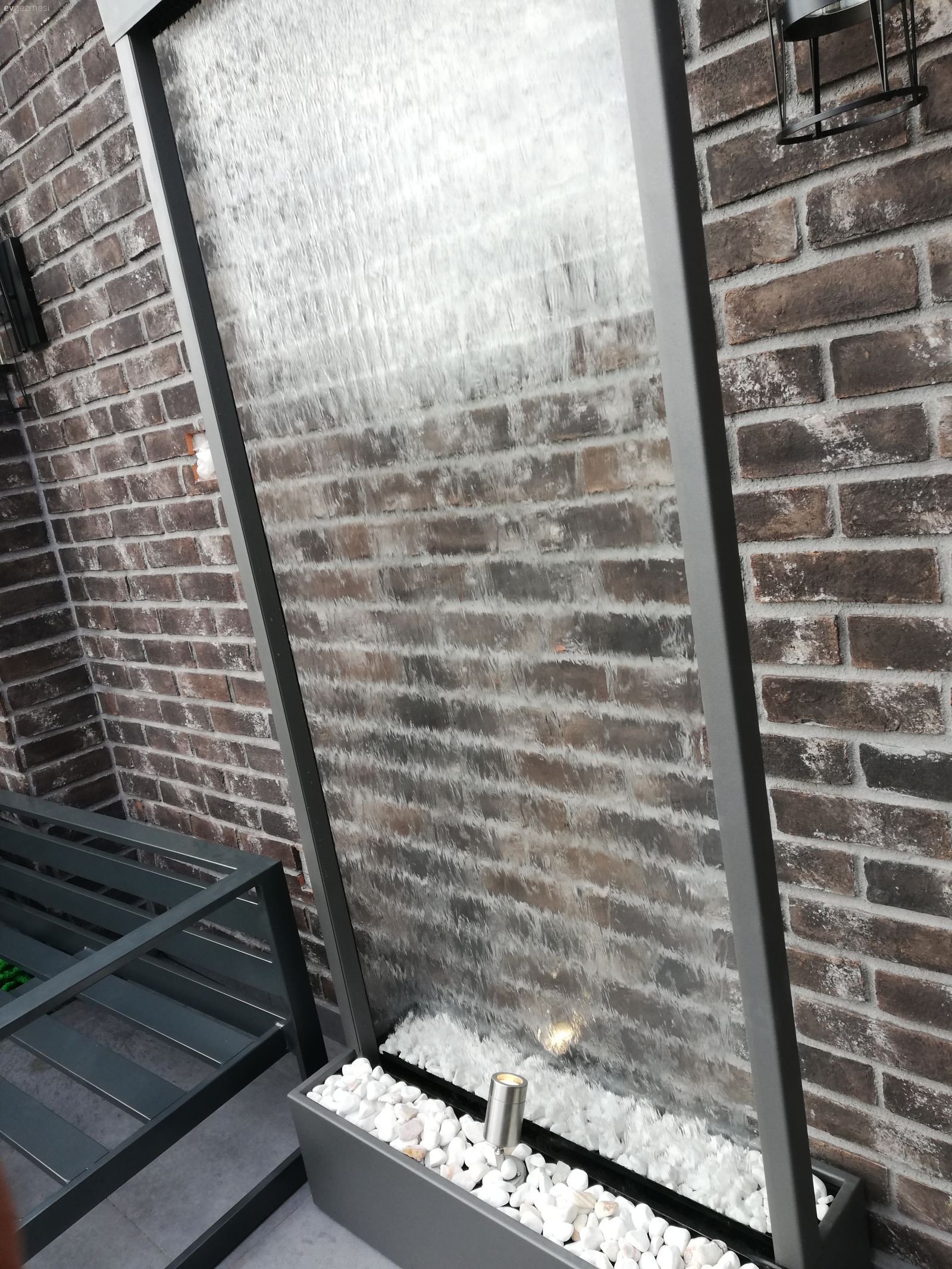 Müşterimizin isteği üzerine terasta görsel ve işitsel dekor olarak kullanılmak üzere Su Perdesi üretimi ve kurulumu gerçekleştirdik. Su perdesi genişlik ve yükseklik ölçüsü 100*250cm dir. www.damlaselale.com