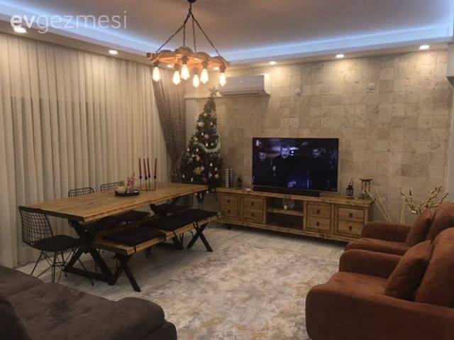 Merve Hanım'ın beyaza olan aşkı zaten anlatılmaz. Eşi bazen bu beyaz sevgisinden şikayetçi olsa da, salonun ana renginin beyaz olmasına itiraz etmemiş. Açık renkli parkeler üzerinde, düz beyaz halı, açık renkli duvarlar ve tamamı beyaz mobilyalar.. Bu açık tonlar elbette alana inanılmaz bir ferahlık katıyor. Vurgulamak için koyu bir ton da lazım. O ton da füme olarak kırlent, runner ve fon perdelerde yerini bulmuş.
